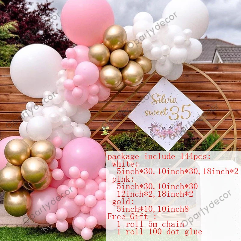 Большая Пастельная белая и розовая гирлянда с воздушными шарами, хромированные металлические золотые шары для детей и взрослых, украшение для вечеринки в честь Дня Рождения, Свадебный декор