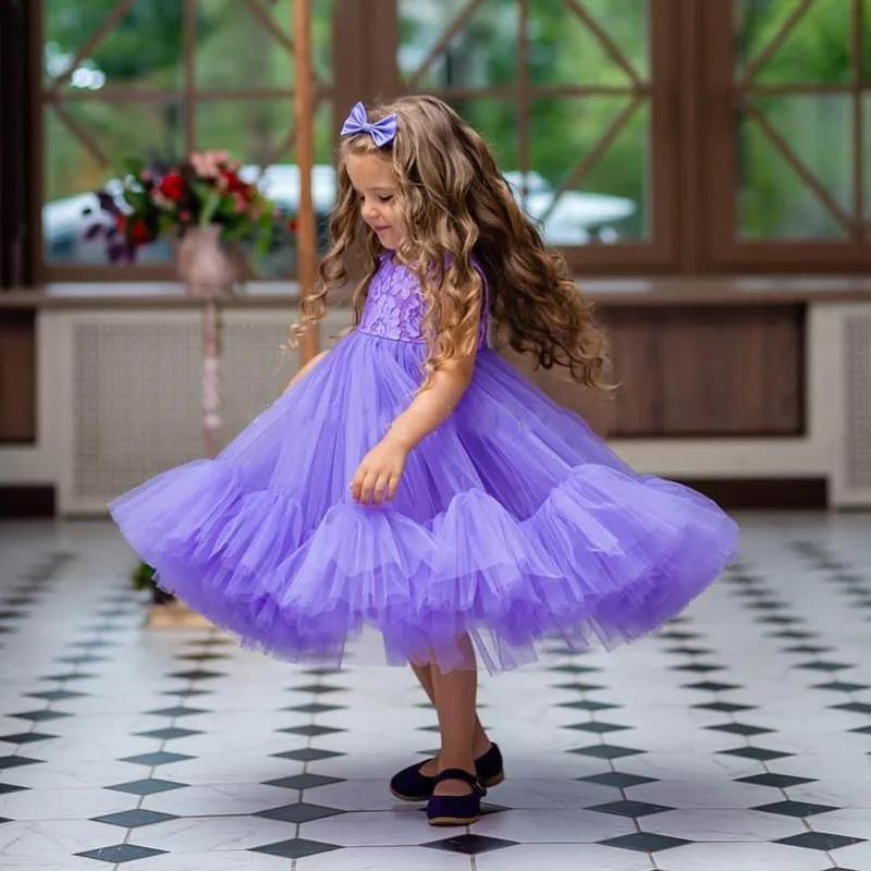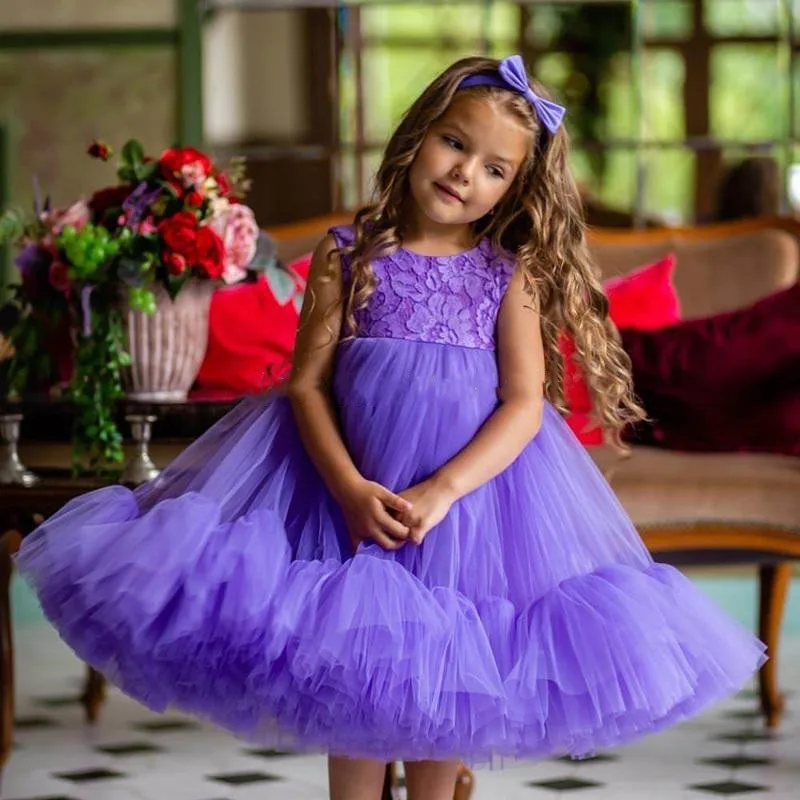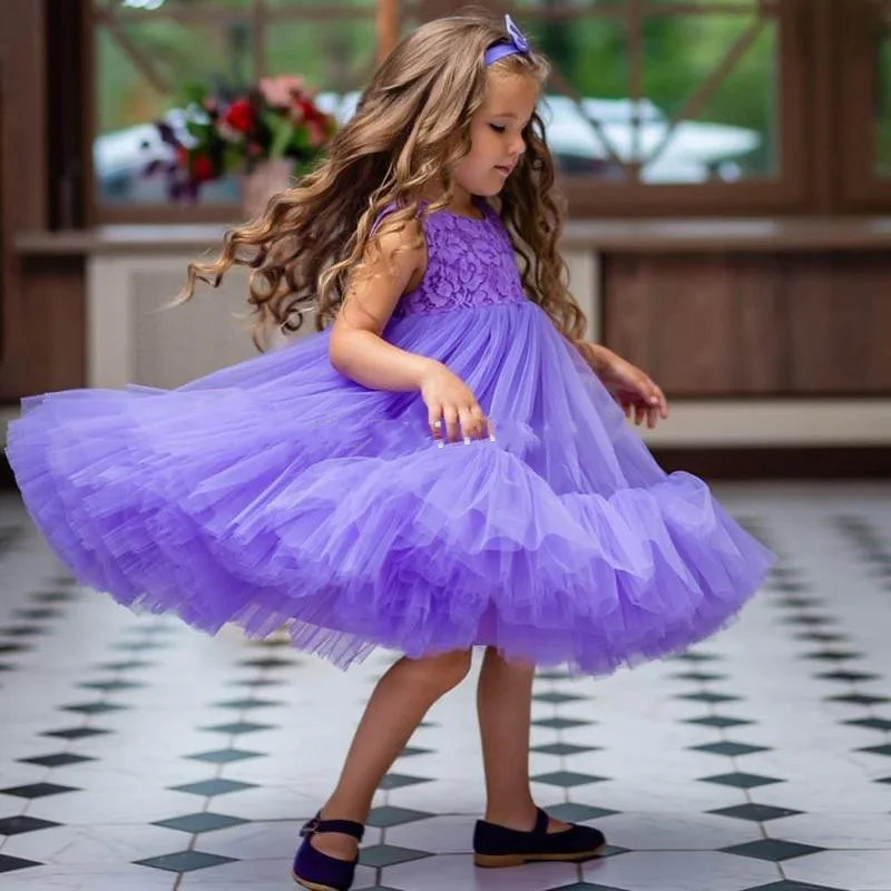 Платья для девочек в несколько рядов лаванды, Кружевная аппликация ...