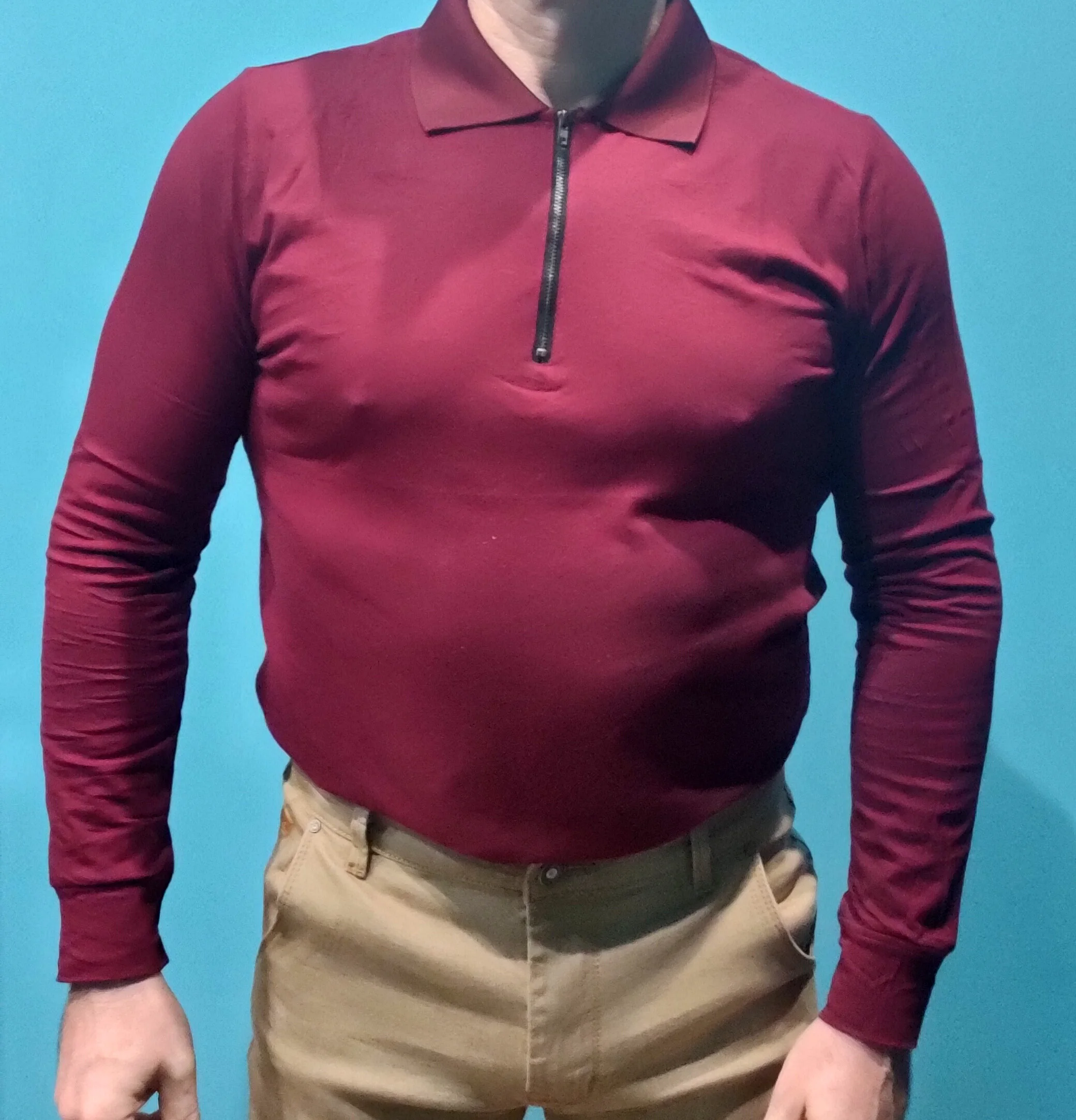 Доставили за 16 дней общим пакетом. Упаковано в пакетишко с кулачёк. Материал похож на хлопок с вискозой. Тонюсенький. Воротник потолще, похож на полиэстер сшитый резинкой. Жена сказала что железная молния выглядит дёшево. Надо было делать пластиковую и прятать её. С размером угадал. L - наш 48 размер. (рост 170 см, вес 74 кг)