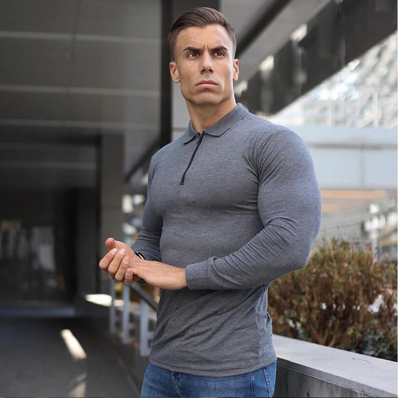 Рубашка-поло мужская с длинным рукавом, хлопок, Повседневная модная уличная одежда, для фитнеса и спорта, однотонная, весна