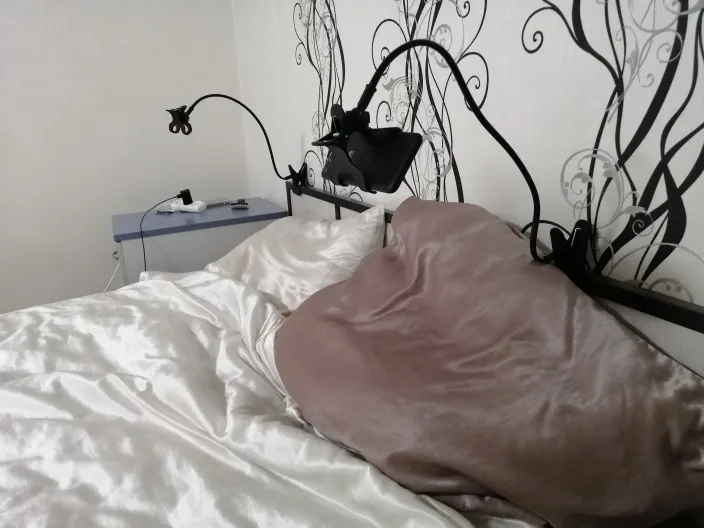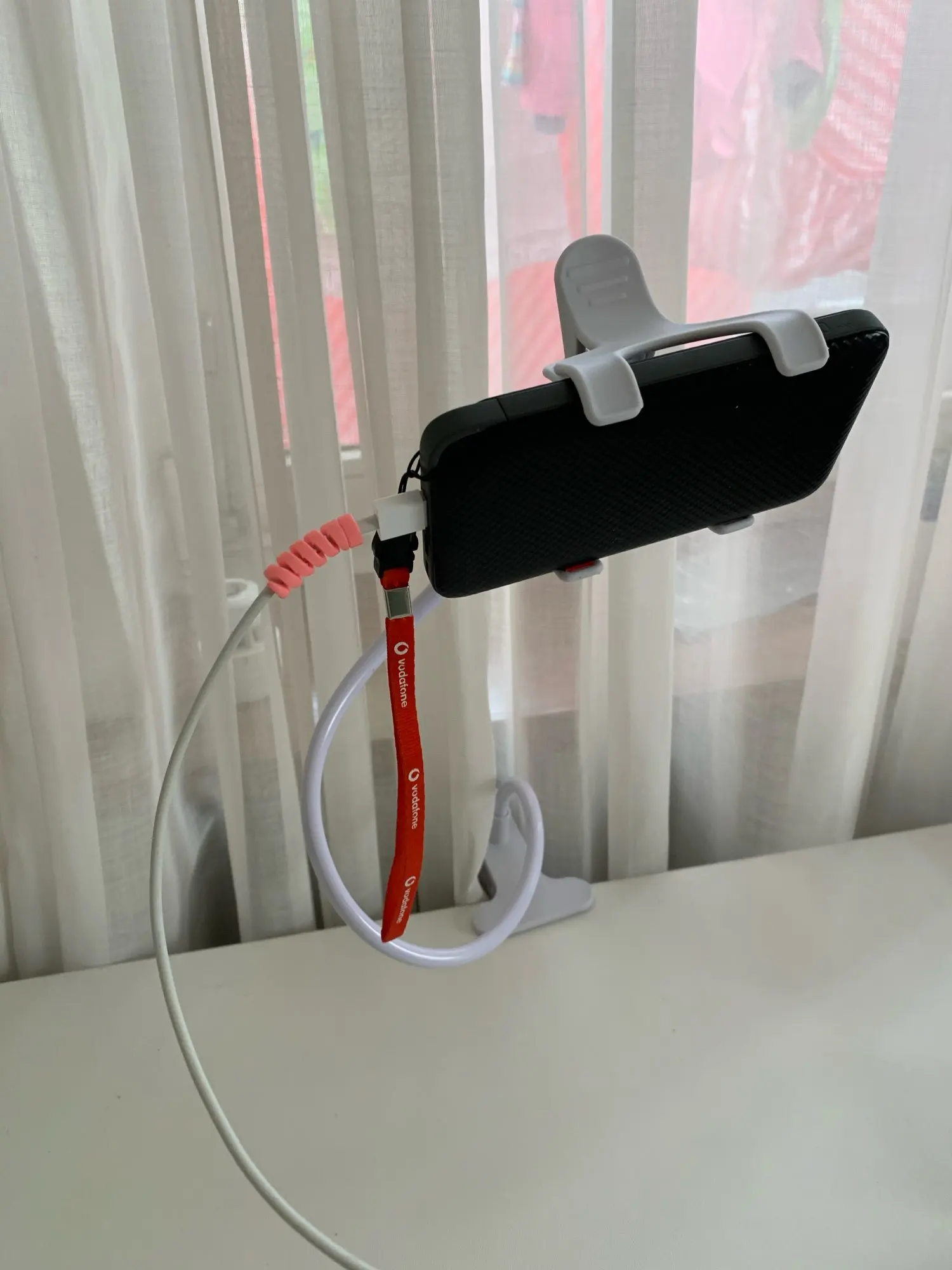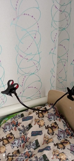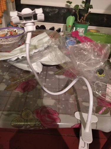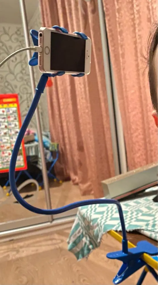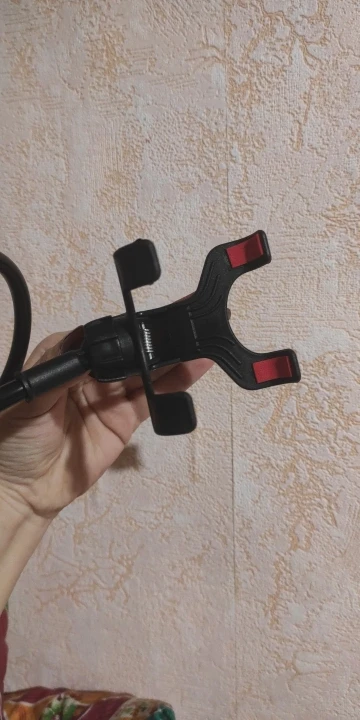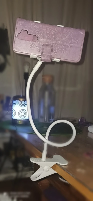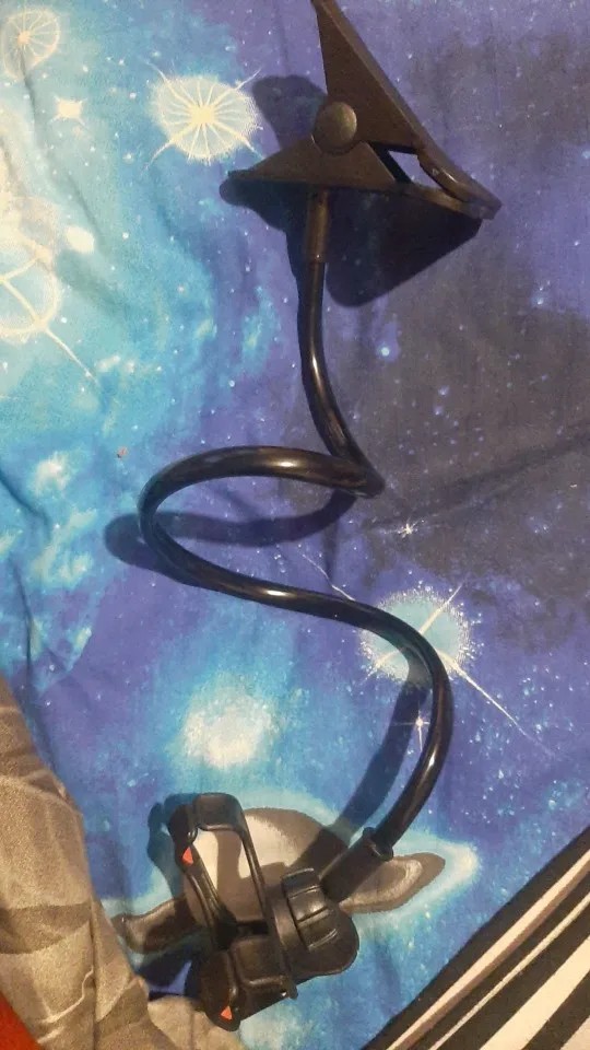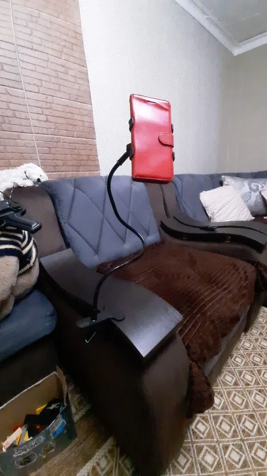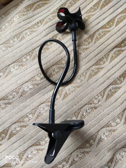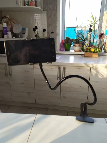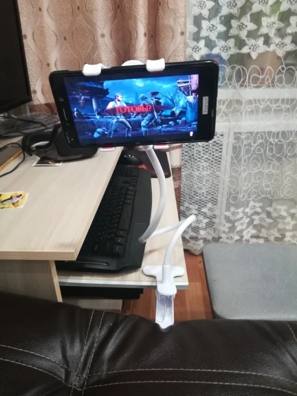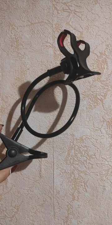Получил товар и установить его прямо на мой стол. Держатель очень жесткий и может работать сам по себе без подключения в качестве поддержки телефона на ровной поверхности. Крепится на каркас кровати и дает пользователю тишину от удержания в руках. Единственный дефект, который я могу найти, это сам вес, я надеюсь, что он будет держать после 2 месяцев использования.