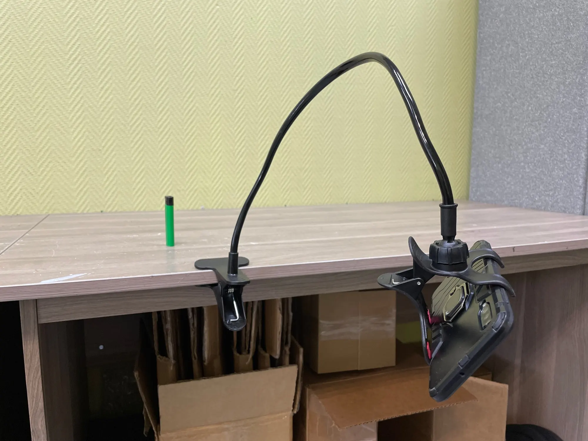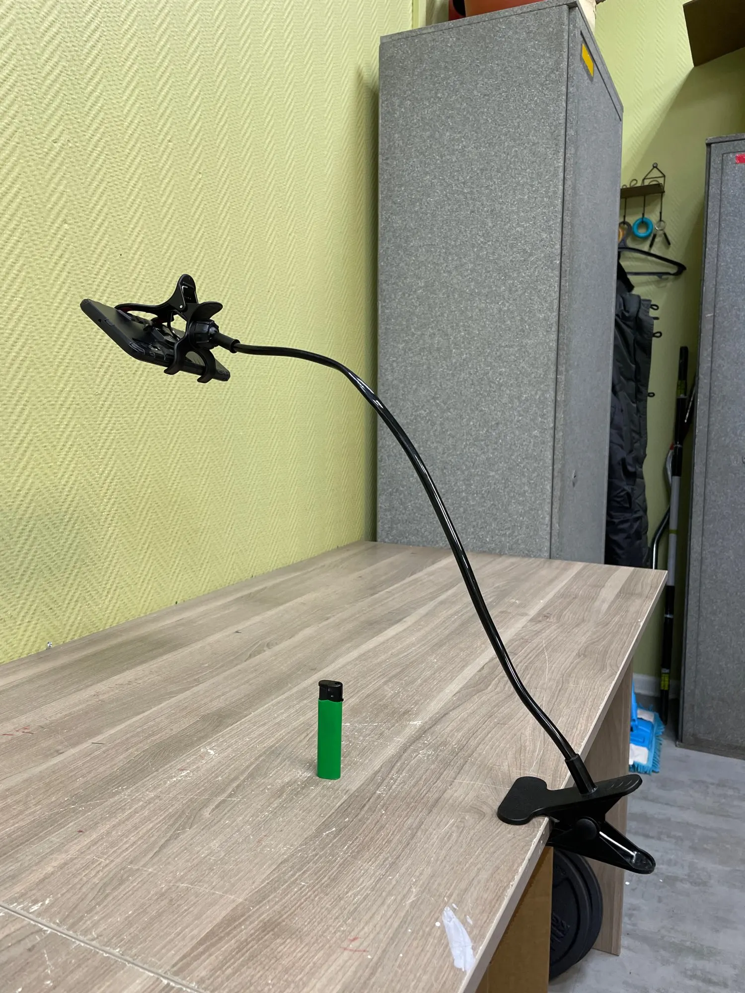 Классный держатель, очень жесткий. Слабовата прищепка к поверхности, но как-то решил это