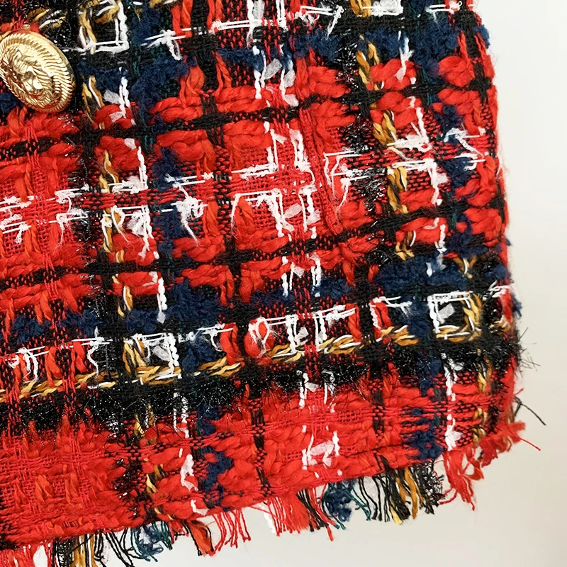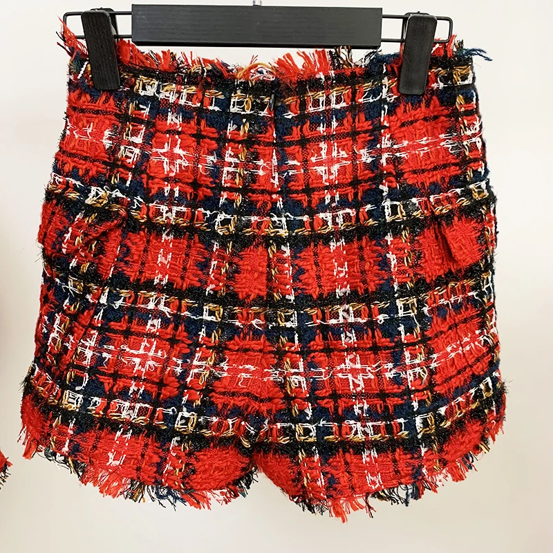 Женские твидовые шорты, с бахромой и кисточками, в клетку, 2021