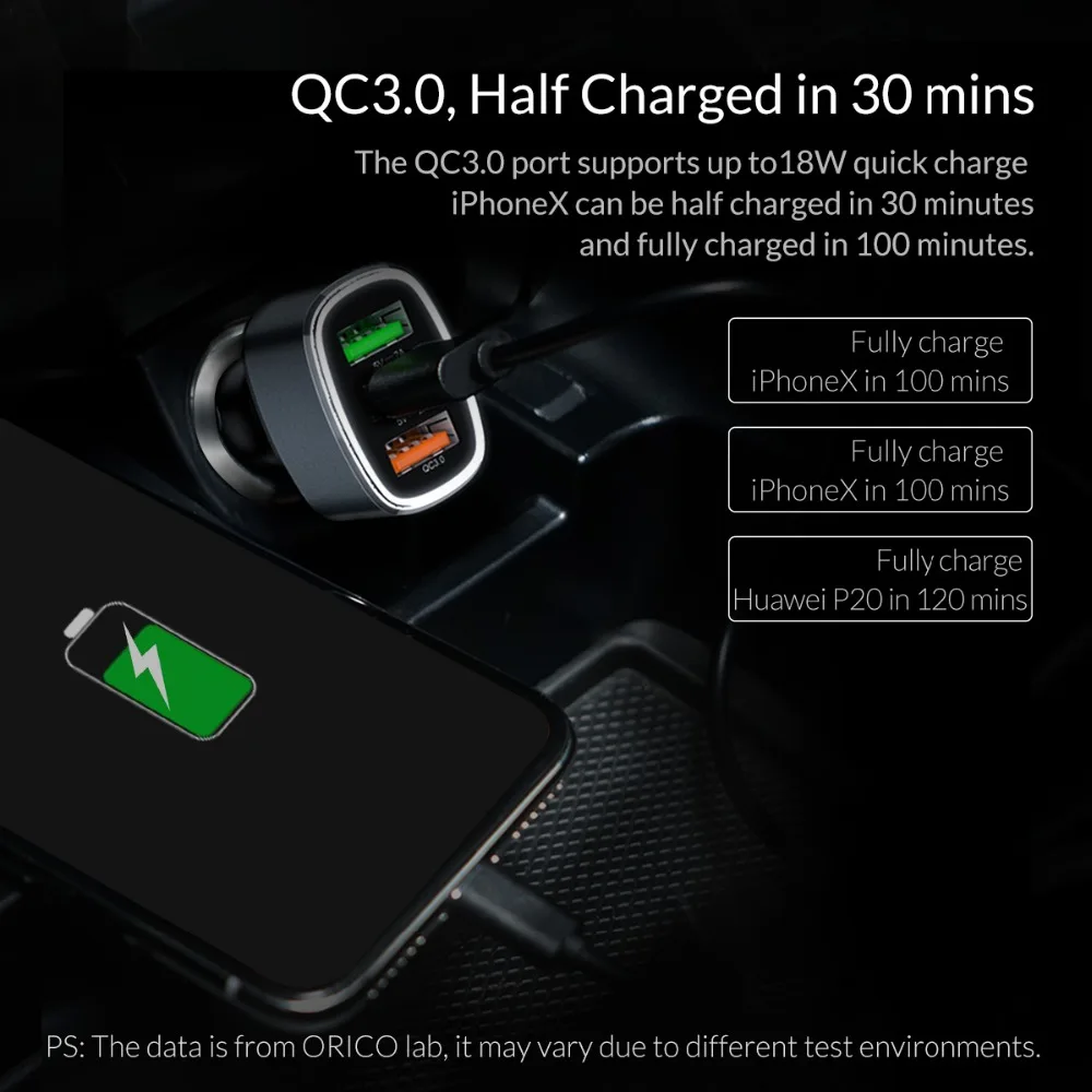 Зарядное устройство ORICO в прикуриватель, 3 USB-порта, 33 Вт