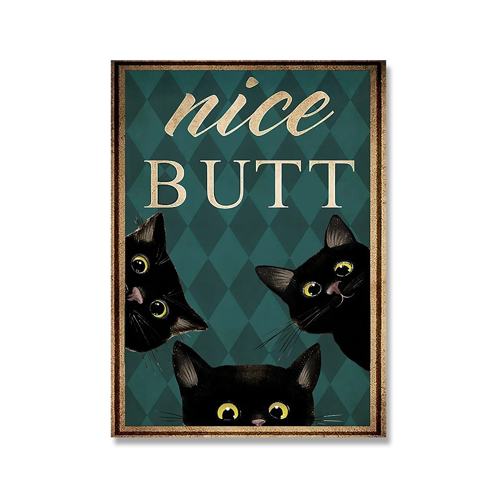 Холщовый постер с изображением черного и белого кота, абстрактная л...