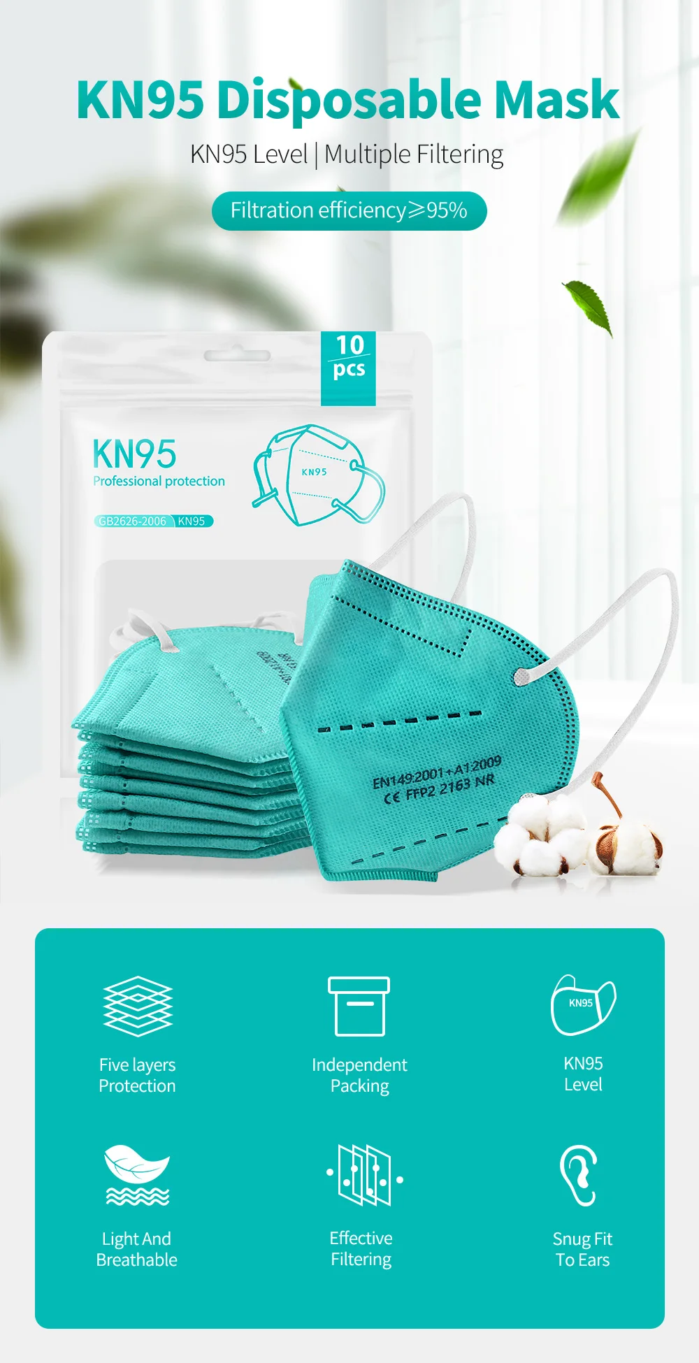 2. Пожалуйста, обратите внимание: "CE FFP2. .." не Напечатано на черных, синих и серых масках KN95. Только что напечатано на упаковке.