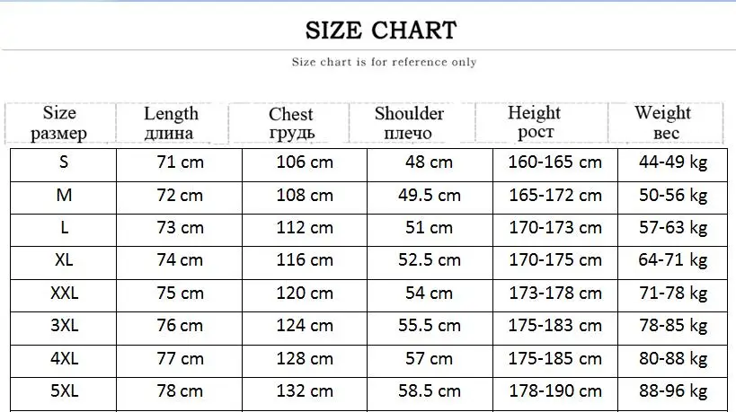 1. Это китайский Размер, обычно на 2-3 размера меньше размера EU/US. Если вы носите Европейский/американский размер M, вы можете выбрать наш Размер XL или XXL.2. При измерении вручную допускается погрешность в 1-3 см (1 см = 0,39 дюйма).3. Разные компьютеры могут отображать разные цвета, даже если они одного цвета. Пожалуйста, учитывайте разумную разницу в цвете.4. Обычно мы отправляем ваш заказ в течение 3 дней после оплаты, если нет, пожалуйста, свяжитесь с нами, чтобы проверить проблему.