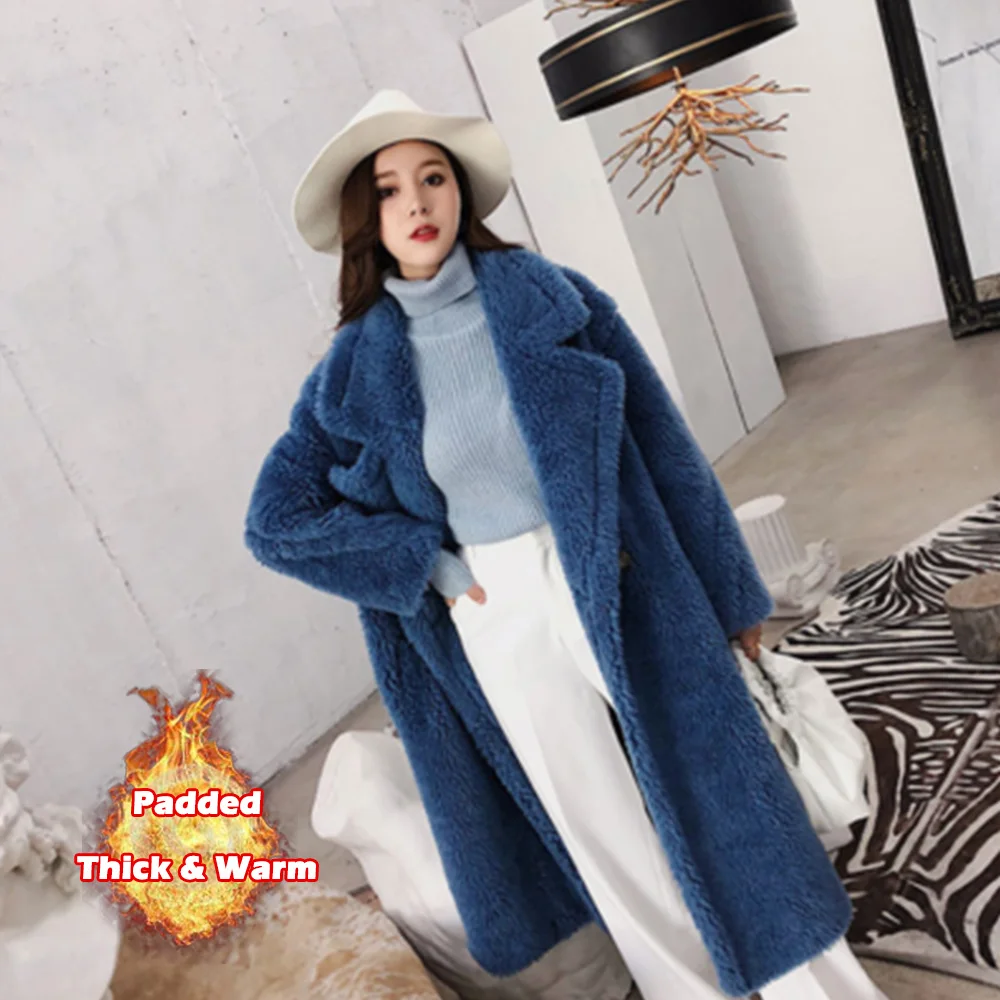 Женское зимнее теплое длинное пальто из искусственного меха, женско...