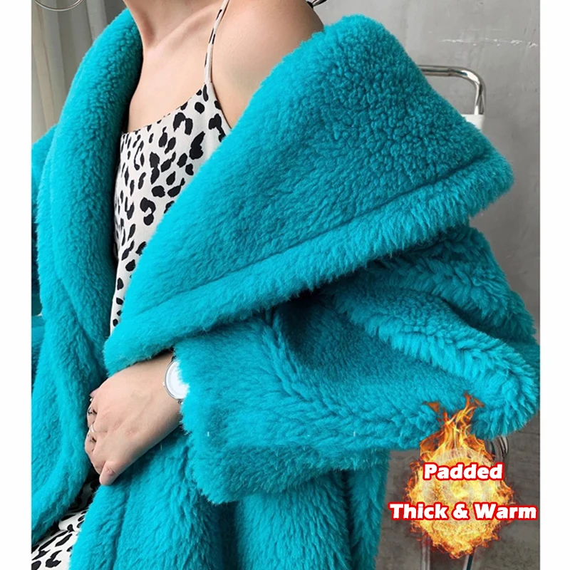 Шуба женская из искусственной овечьей шерсти, теплая, оверсайз