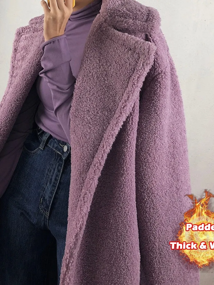 Женское зимнее теплое длинное пурпурное пальто из искусственного ме...