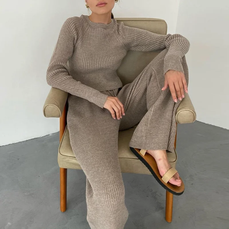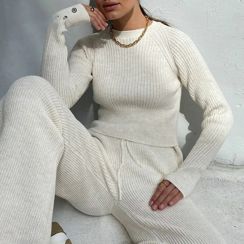 Повседневный вязаный свитер, костюм, зимний спортивный костюм, женская одежда, 2022, вязаные брюки из двух предметов, теплый комплект, женская спортивная одежда с длинным рукавом