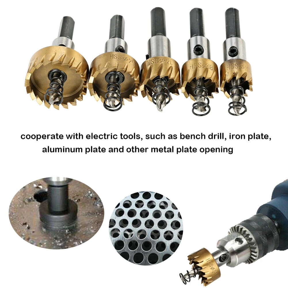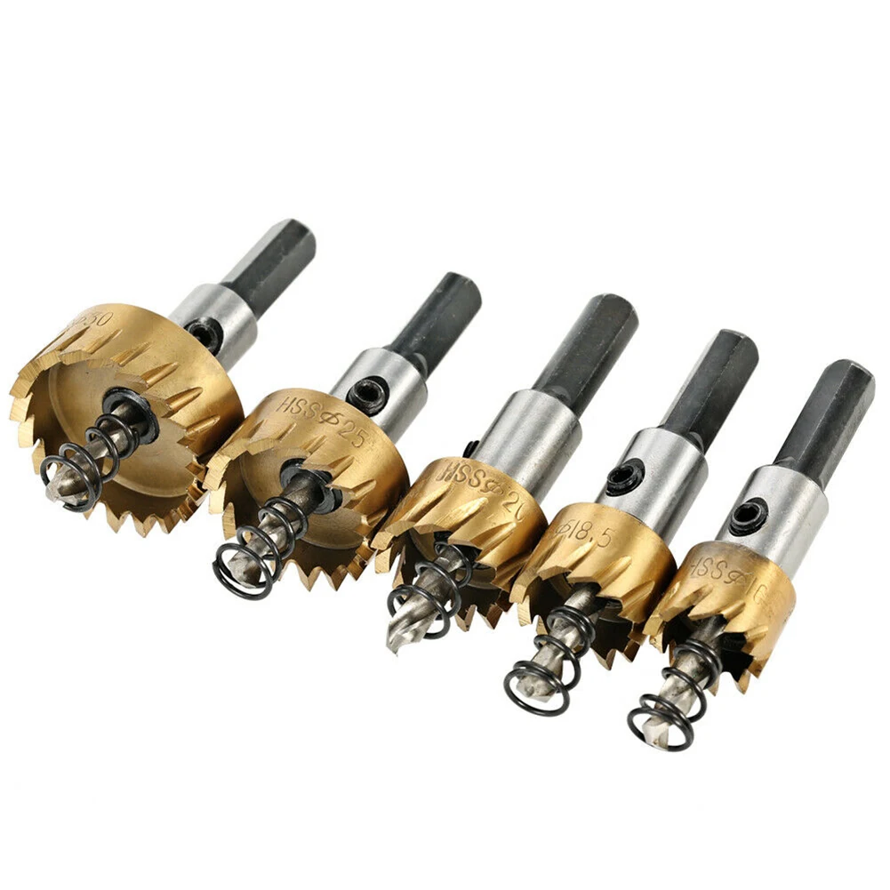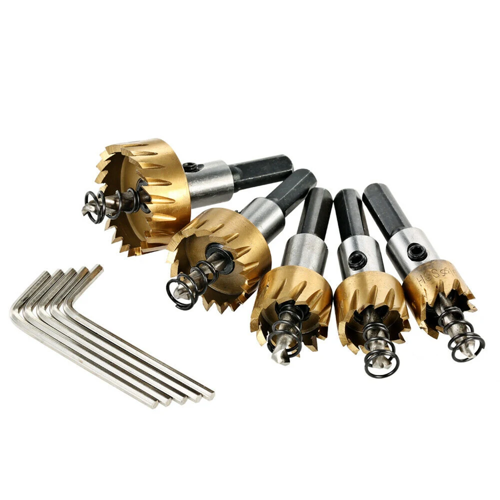 Набор корончатых сверел из быстрорежущей стали, 5 шт., трехходовые сверла, резак, инструмент для сверления металлического, деревянного сплава, установка дверного замка