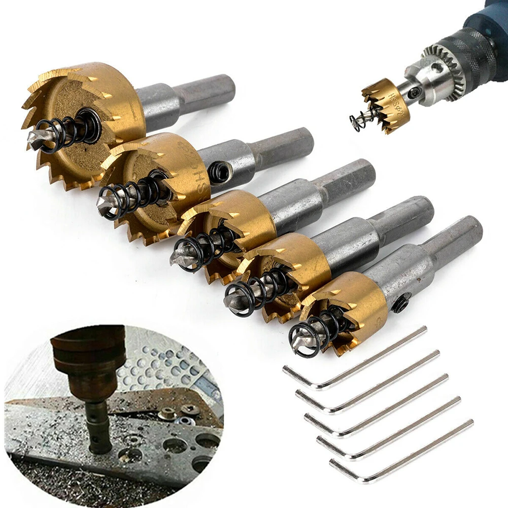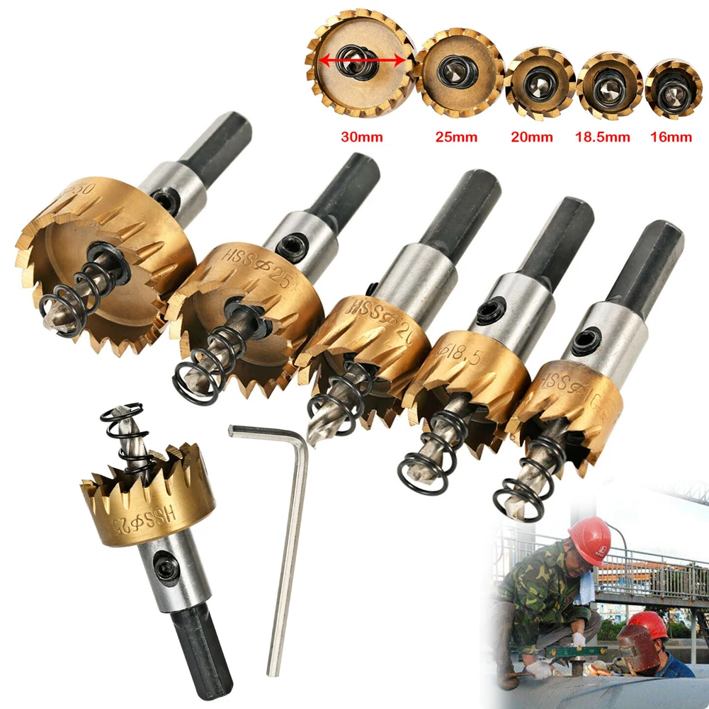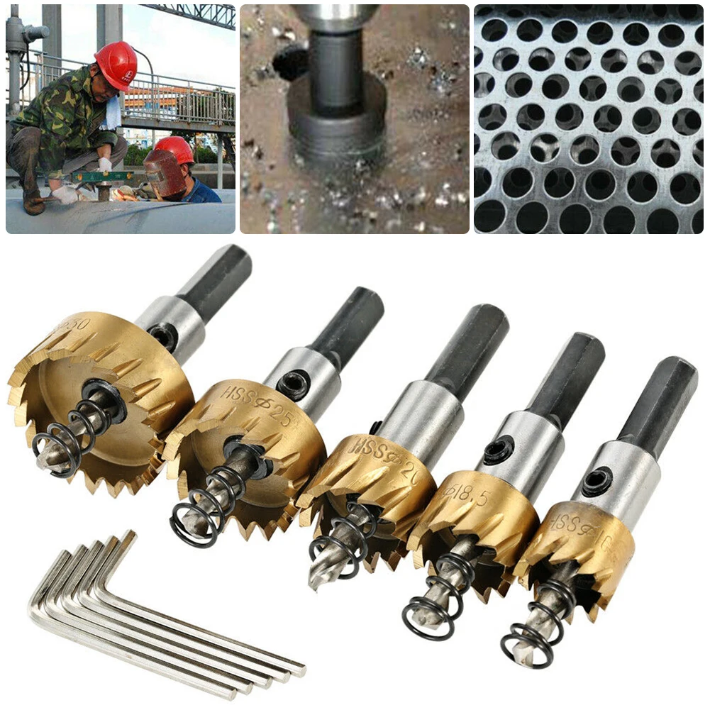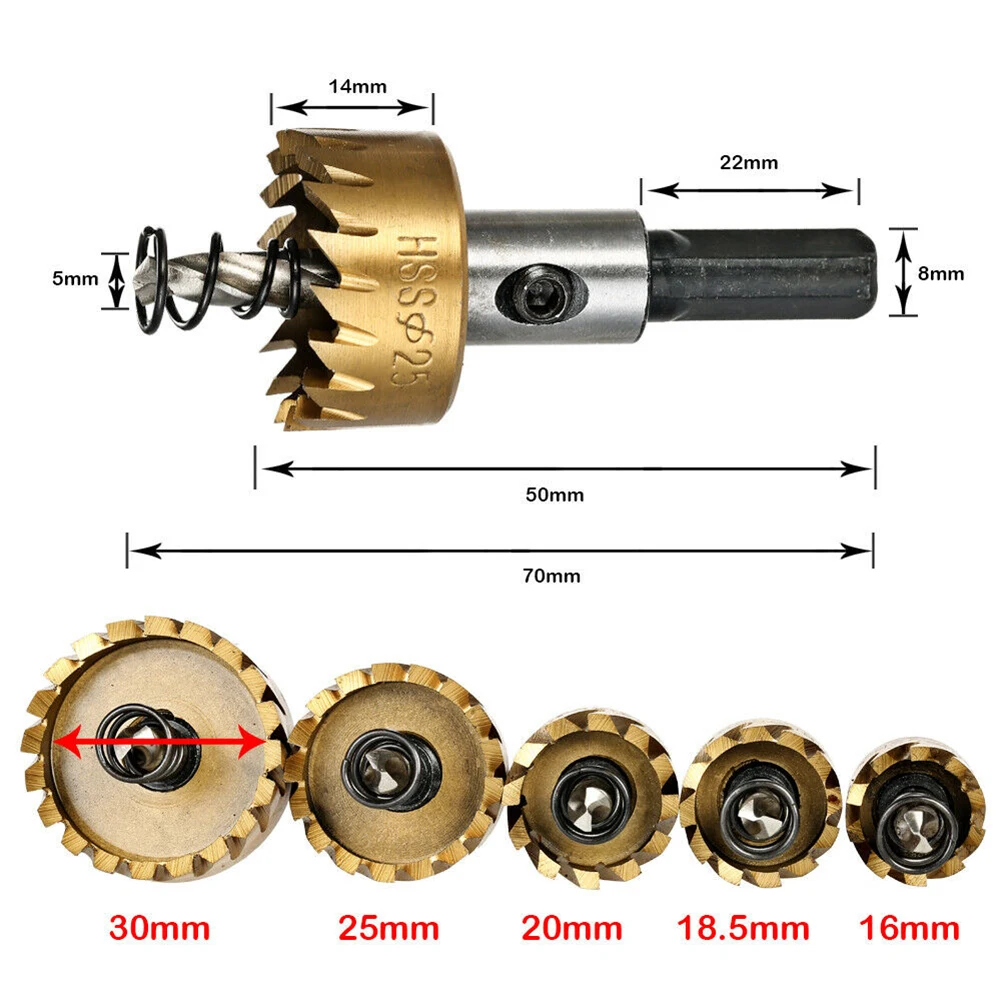 Набор корончатых сверел из быстрорежущей стали, 5 шт., трехходовые сверла, резак, инструмент для сверления металлического, деревянного сплава, установка дверного замка