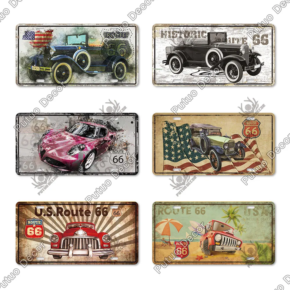 Металлическая винтажная металлическая табличка Putuo Decor Route 66 для бара, паба, автозаправочной станции, гаража, мужской пещеры, украшение для стен дома