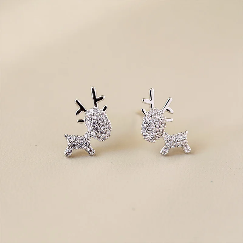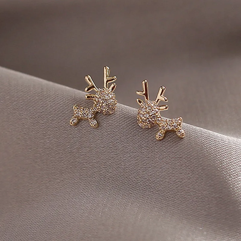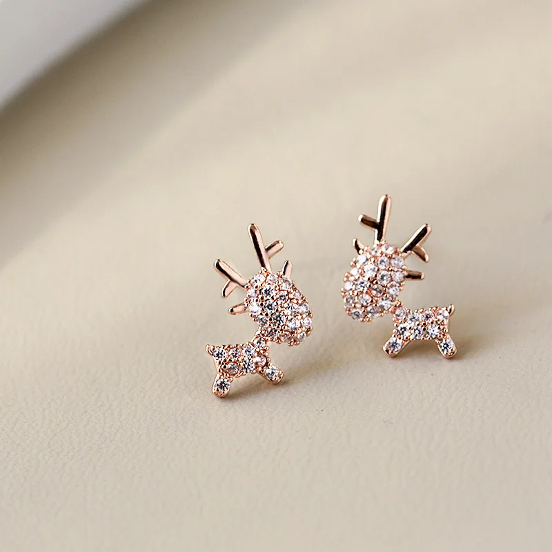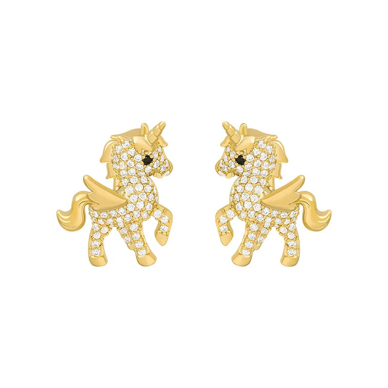 Серьги-гвоздики женские золотистые с фианитами и единорогом