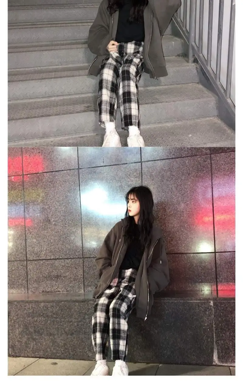 Брюки женские в клетку, в стиле Харадзюку, Осенние, повседневные, 2020