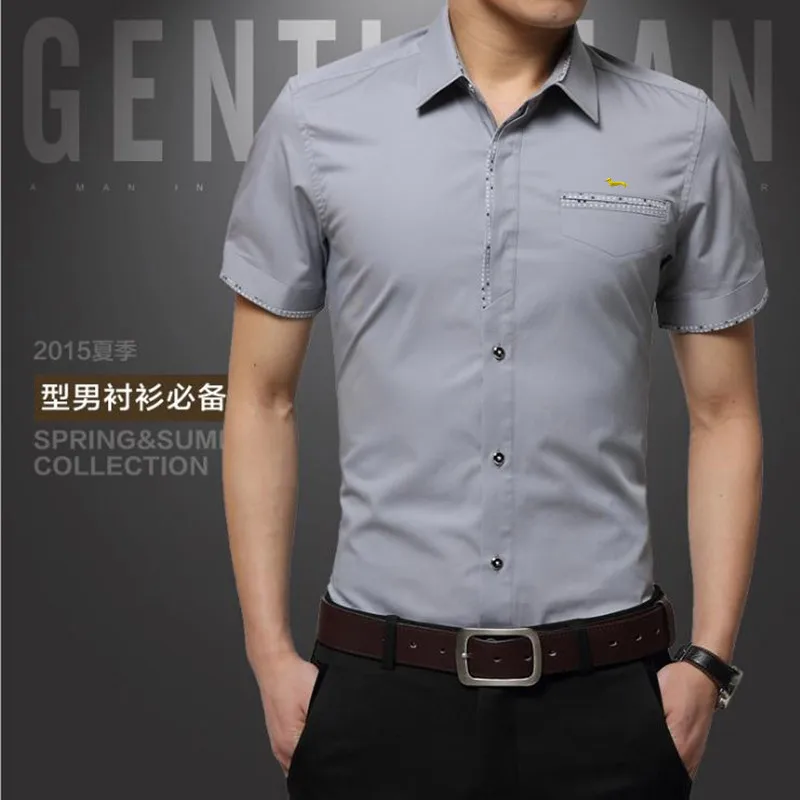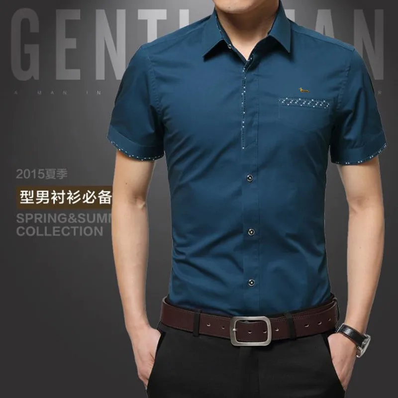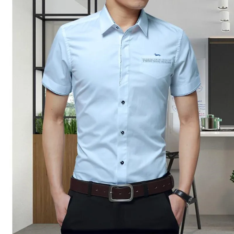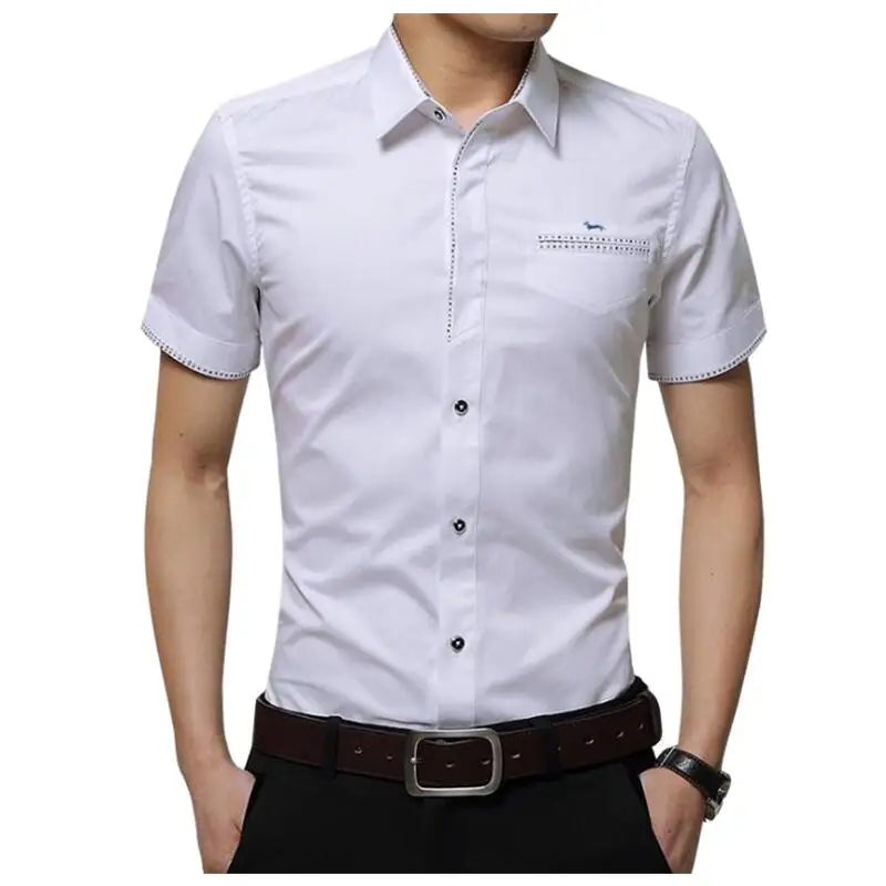 Рубашка мужская с вышивкой Harmont, мягкая блузка с короткими рукавами, однотонная Повседневная приталенная, Азиатский размер, на лето