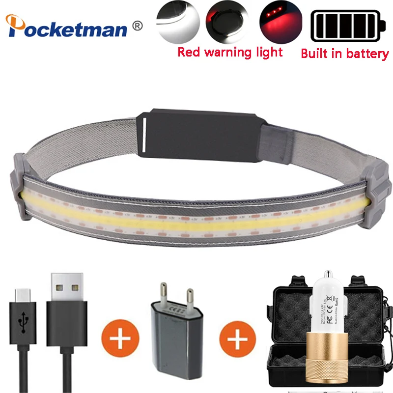 Налобный фонарь, светодиодный со встроенным аккумулятором и Предупреждение светильник, 8000 Люмен