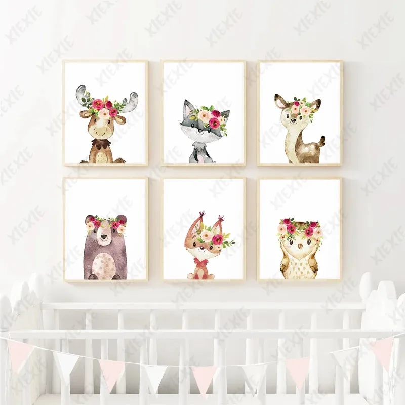 Плакат на холсте с изображением животных оленей и смайлов, картина с цветами, украшение для дома, Художественная печать, картина в скандинавском стиле