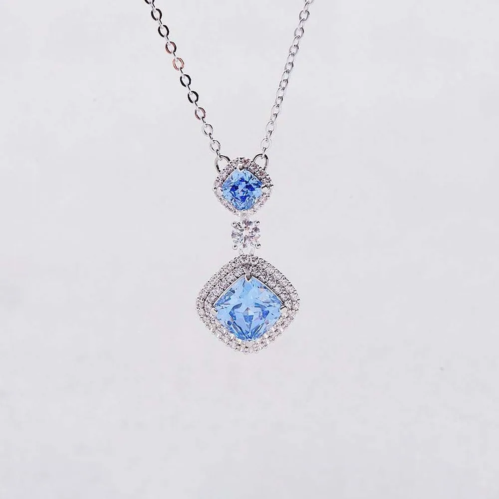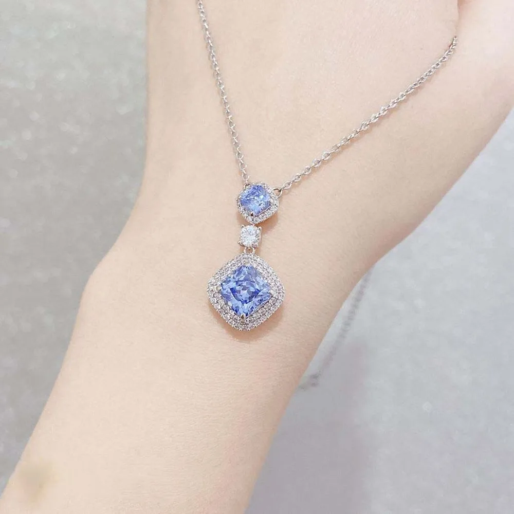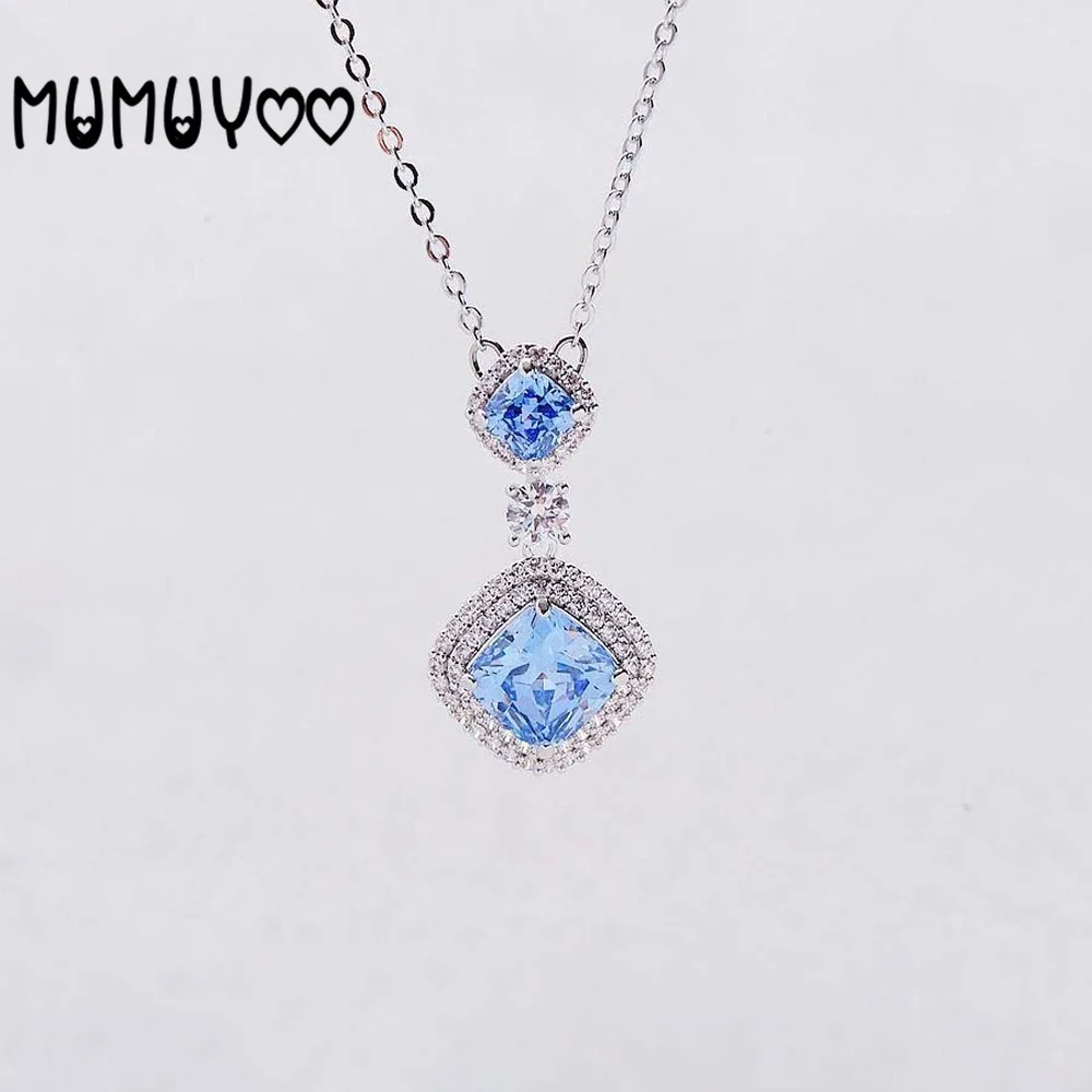 2020 SWA модные ювелирные изделия высокого качества элегантный Небесно-Голубой квадратный кристалл кулон ожерелье Y-образная цепочка до ключицы романтический подарок