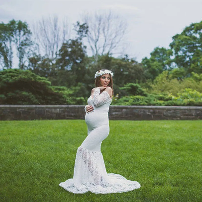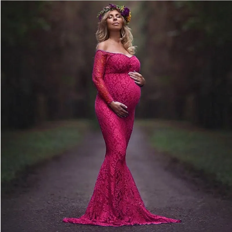 2021 Русалка беременности и родам платья для фотосессии кружевное платье макси для беременных с открытыми плечами пикантные Для женщин Беременность Платье Опора