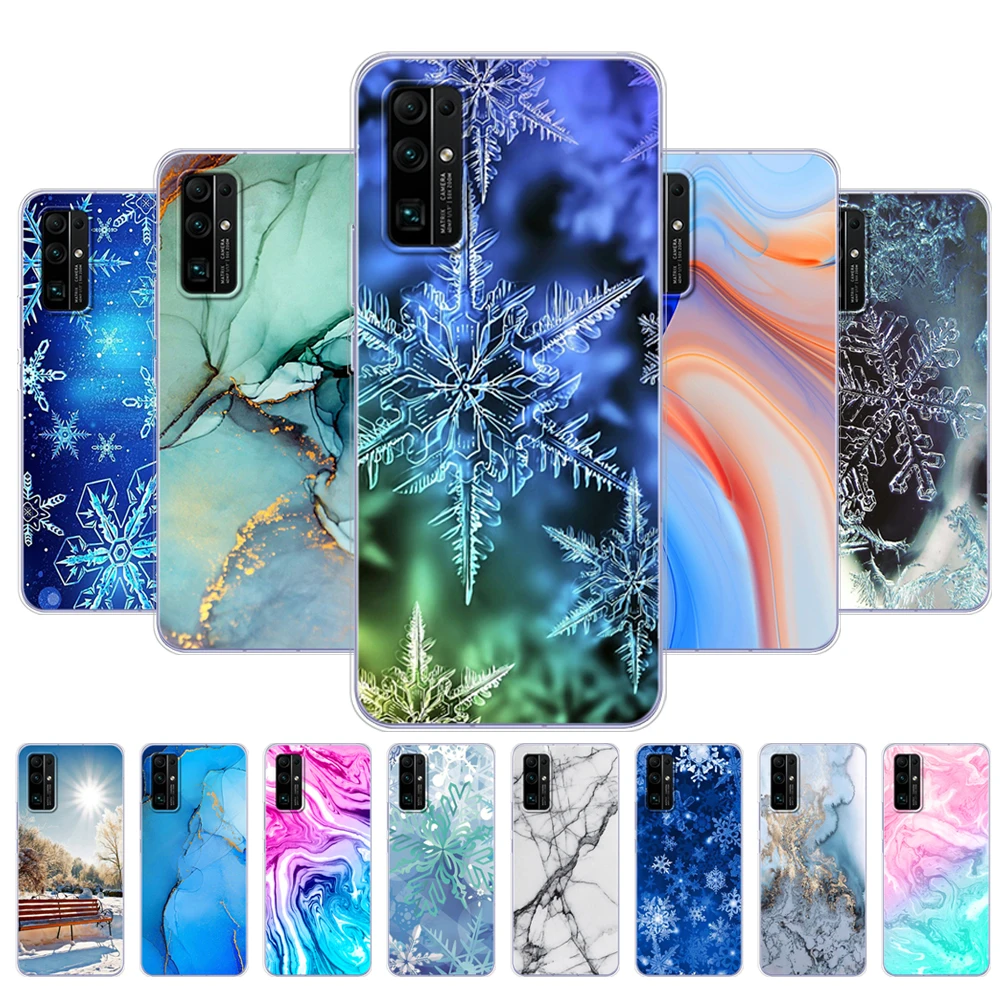 Чехол для Honor 30 Premium, BMH-AN10, силикон, ТПУ, задняя крышка для Huawei Honor 30 Pro Plus + EBG-AN10, мраморный рисунок снежинок, зима, Рождество