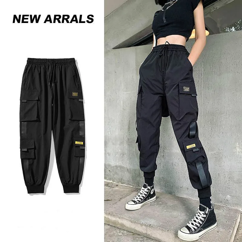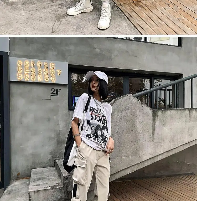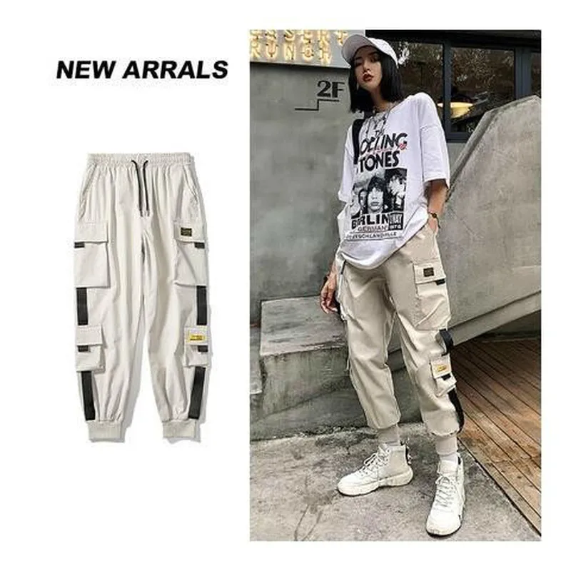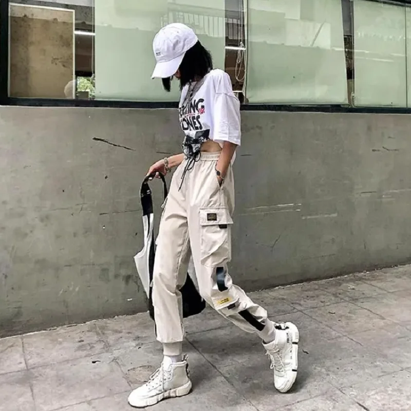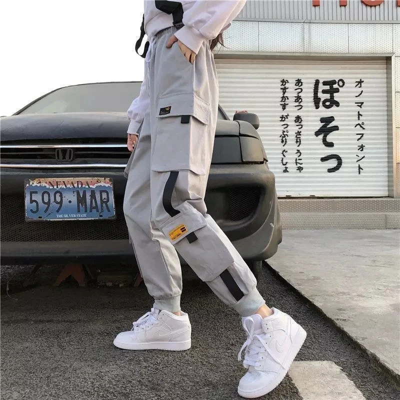 Женские брюки-карго QWEEK, в стиле панк, Свободные тренировочные штаны, в стиле Харадзюку, повседневные, Techwear, Японская уличная одежда