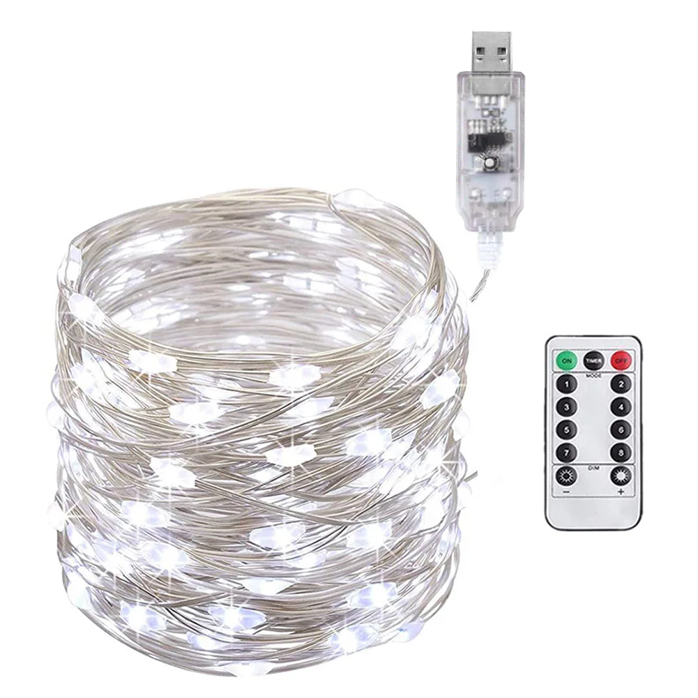 Светодиодная гирлянда с USB, Рождественская лампа с медным проводом и дистанционным управлением, украшение для сада, двора