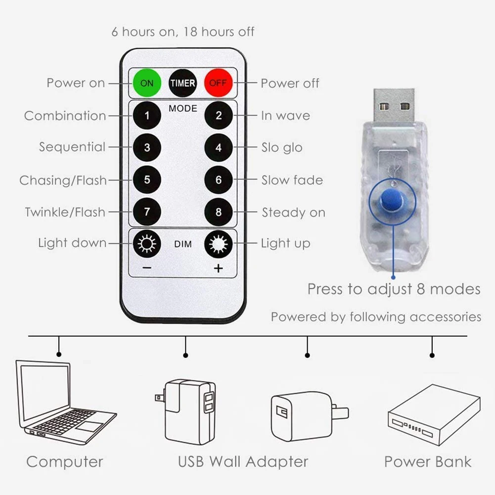 USB СВЕТОДИОДНЫЙ светильник Феи медный провод Рождественская гирлянда лампа с пультом дистанционного управления для сада двора ДекорХарактеристика:Светильник подключен к устройству, которое может обеспечить выход 5 В от usb-порта, например настольного компьютера, ноутбука, планшета, прикуривателя светильник er, банка питания, или задней части телевизора.Пульт дистанционного управления и ручное управление: Используйте пульт дистанционного управления или нажмите синюю кнопку для регулировки эффекта освещения. Есть 8 режимов освещения на выбор, начиная от комбинации до освещения, вспышки, стабильного освещения и т. д., с 10 уровнями регулировки яркости, А также 8 часов включения и 16 часов выключения питания.Изготовлено из медной проволоки, гибкое и прочное, вы можете накрутить нитку света в желаемую форму по желанию, или накрутить ее в месте предметов или декоративного освещения.Широкий спектр применения в помещении/на открытом воздухе: эти сказочные огни являются водонепроницаемыми, очень подходят для добавления цвета в ваше украшение или создания атмосферы на Рождество, День благодарения и Хэллоуин. Идеально подходит для использования в ресторанах или малых предприятиях.Спецификация:Размер изделия: 10 метров 100 светодиодныйСветильник, цвет: теплый светильник/цветной светильник/белый светильник/розовый светильник/синий светильникМощность: 5 В USB интерфейсОписание функции:КомбинацииЧеканка/вспышкаВ волнахМедленное выцветаниеПоследовательныйМерцание/вспышкаSlo-gloУстойчивый наПримечание:В связи с различиями мониторов и эффектами освещения реальный цвет товара может немного отличаться от цвета на фотографиях. Спасибо!Возможны отклонения в 1-3 мм вследствие измерений вручную.