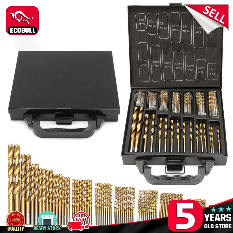 99 шт. высокое качество 1,5-10 мм набор сверл с титановым покрытием HSS и чехол, пластиковый набор инструментов для сверления дерева и металла