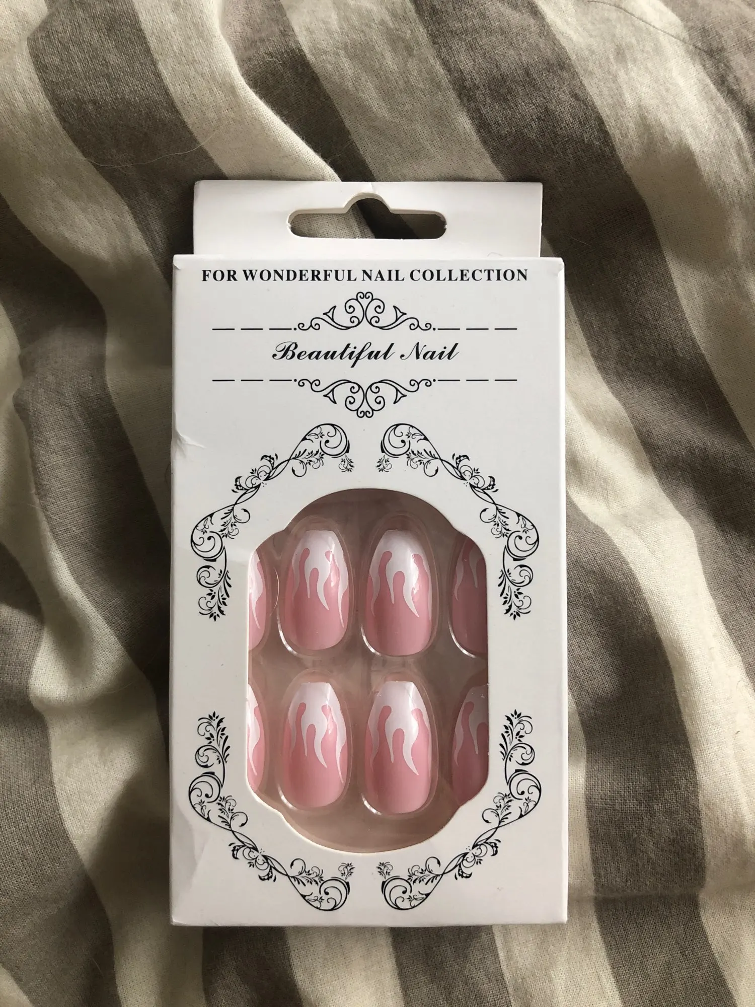 Накладные ногти, 24 шт.кор., очаровательные, с рисунком розового пламени, пригодные для носки, накладные ногти, квадратная голова, полное покрытие, съемные, Готовые Ногти