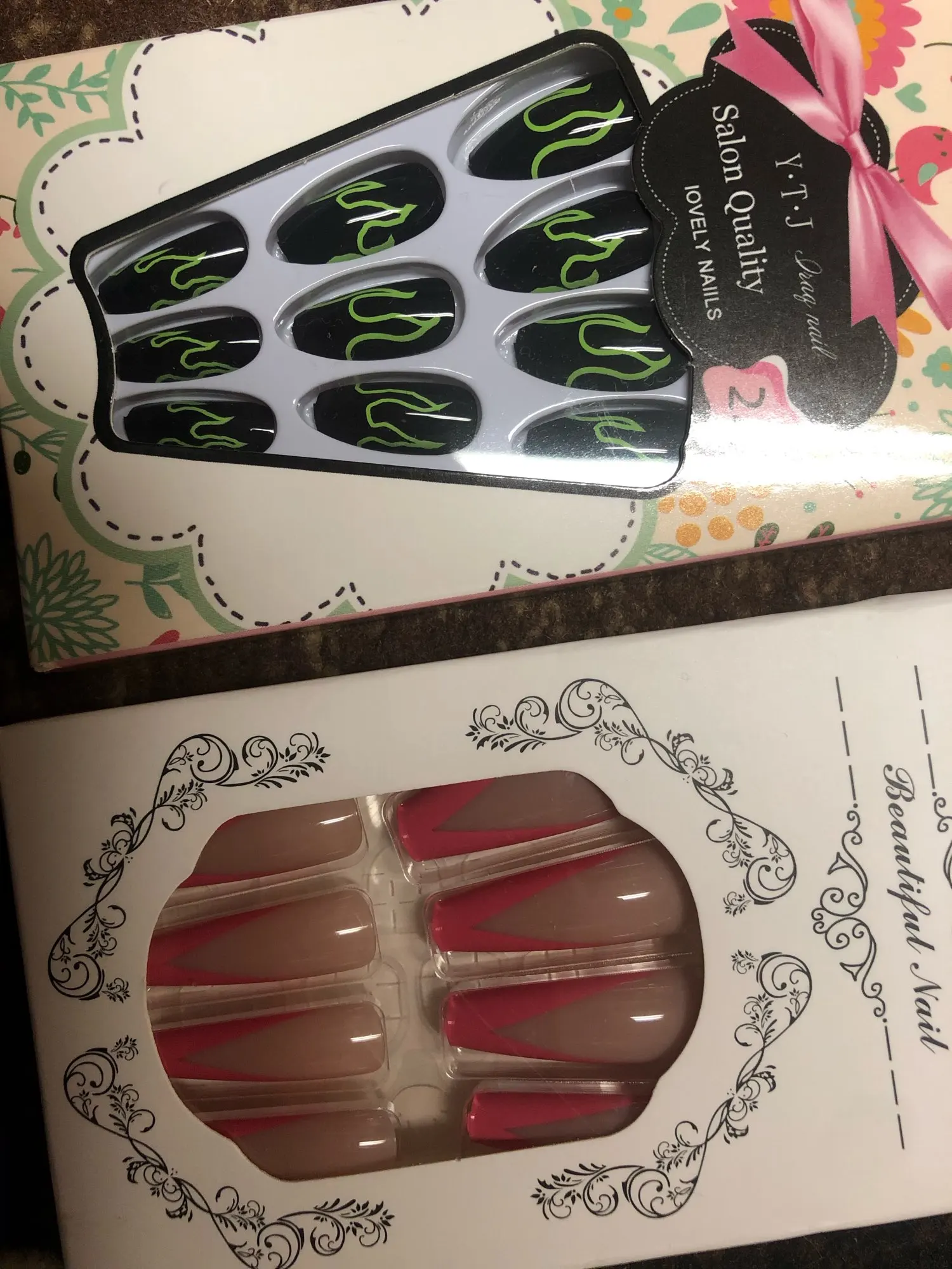 Хорошо по цене и очень удобно, однако принт на ногтях немного необычный. Все еще буду использовать их, но я могу использовать Маркер над зеленым, чтобы сгладить линии. Поставляется с прессованными накладками для ногтей!