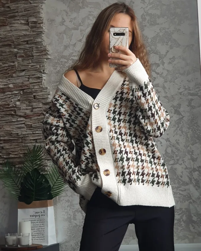 В бежевом цвете присутствует зелёный (на фото продавца не очень видно). На 42-44 сел отлично, как небольшой оверсайз. На рост 1.7 рукова не короткие, что очень порадовало. Отличный кардиган