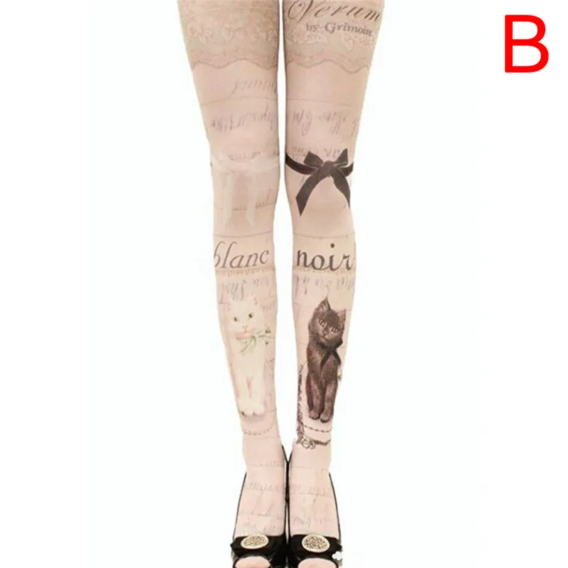 Колготки женские в стиле Харадзюку, вечерние ассортименте, тату Кот
