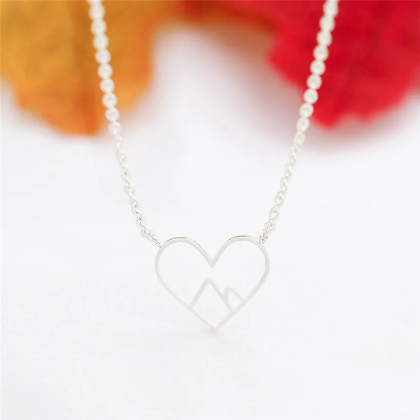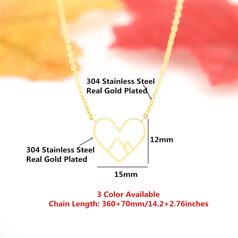 Оптовая продажа, 10 шт. в форме сердца ожерелья в форме гор для женщин ювелирные изделия из нержавеющей стали длинная цепочка ожерелье с подвеской