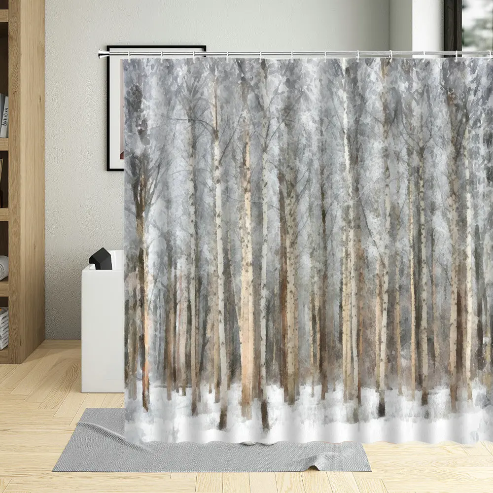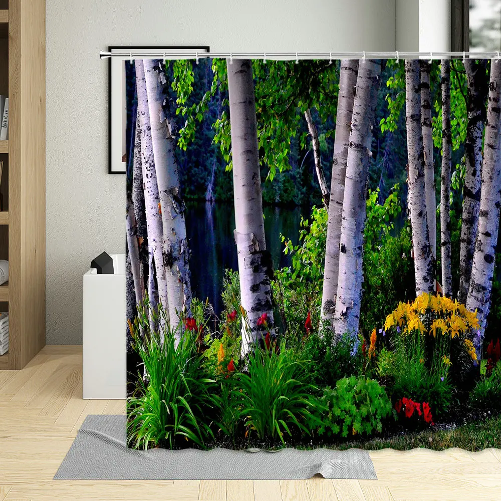 Занавеска для душа, зеленый лес, природа, декор для ванной комнаты,...