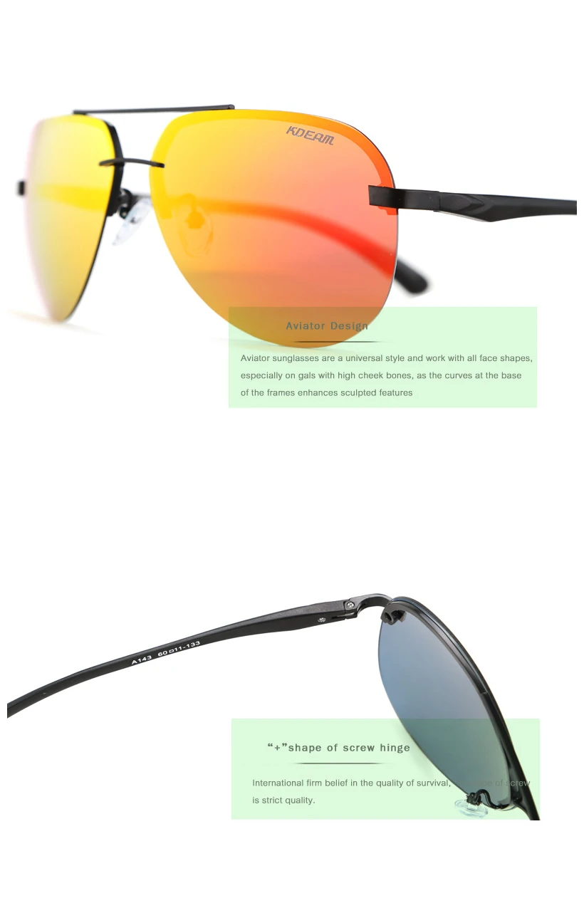 Мужские Солнцезащитные очки-авиаторы KDEAM, брендовые дизайнерские очки без оправы, роскошные поляризационные зеркальные очки для вождения из сплава с коробкой