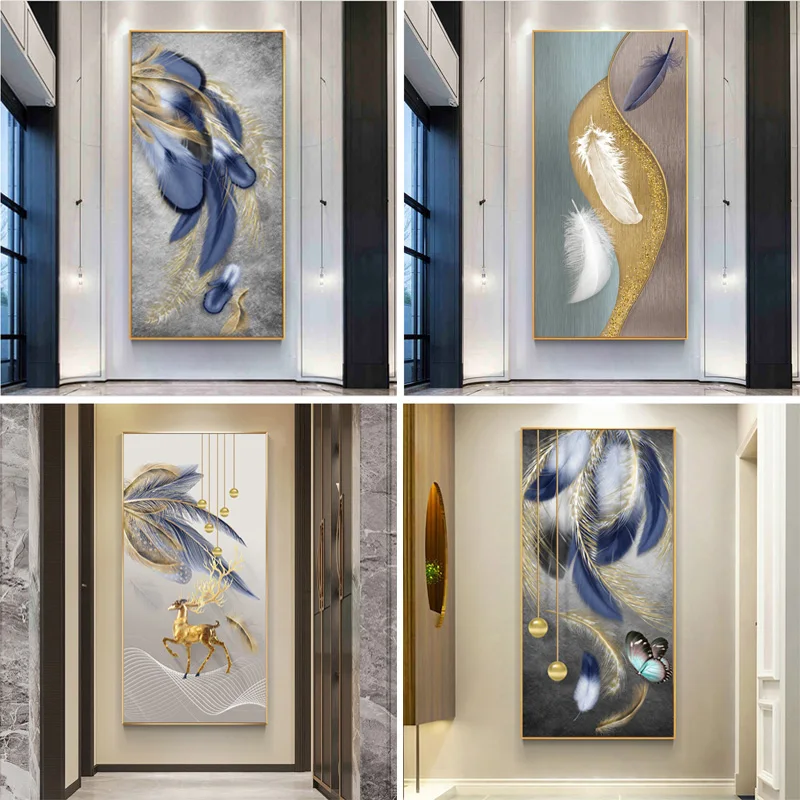 Скандинавские абстрактные красочные перья с золотым оленем живопись на холсте бабочка настенные картинки для гостиной куадро домашний декор
