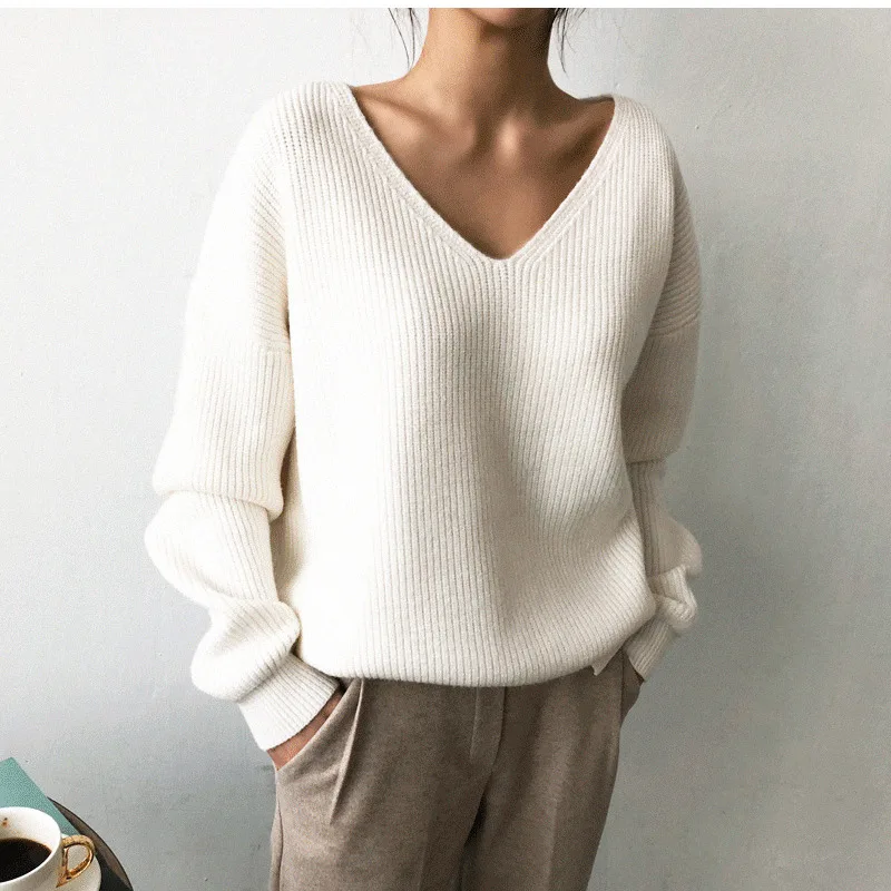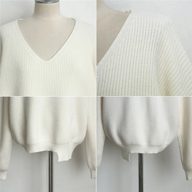 Повседневный свободный белый пуловер Sungtin с V-образным вырезом, свитер, женский зимний черный вязаный свитер с асимметричным подолом, женский синий трикотажный свитер, Новинка для женщин