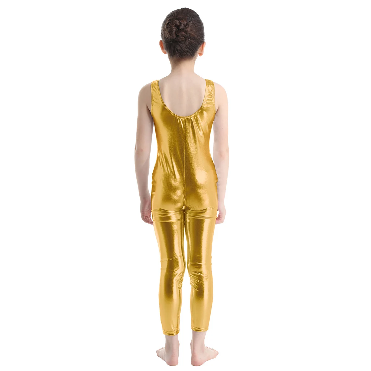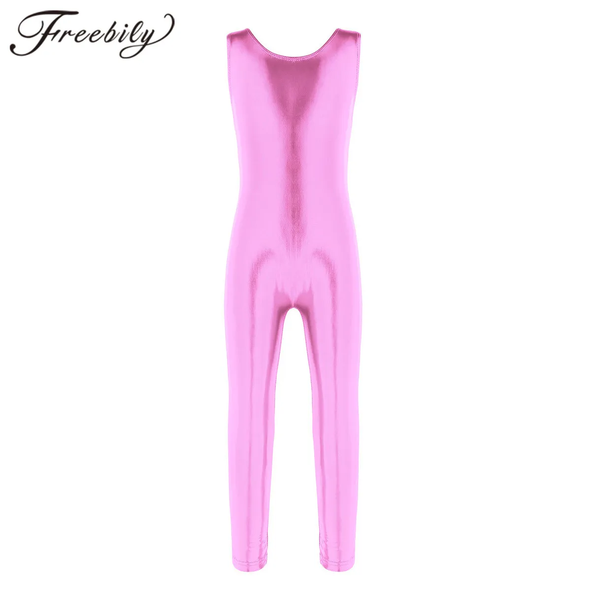 Блестящий купальник без рукавов для девочек, блестящие балетные гимнастические леотарды, комбинезон, детский танцевальный костюм для девочек, балерина костюм для танцев