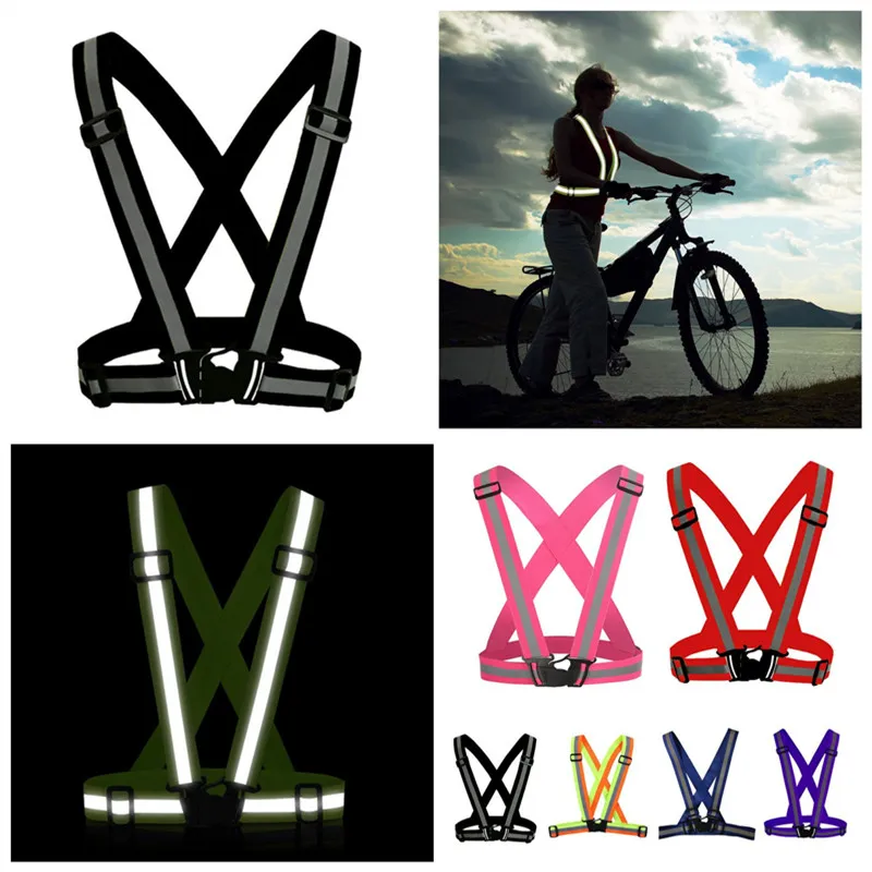 Сверхъяркие регулируемые светоотражающие полосы жилеты безопасность Высокая видимость светоотражающие жилеты ремни для ночного бега