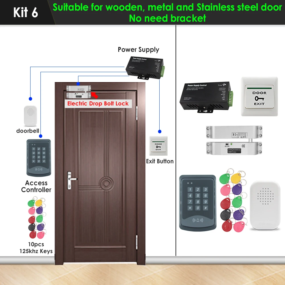 Полный набор входной охранной системы для деревянных, железных и стеклянных дверей, которые вы можете выбрать в соответствии с типом вашей двери. Если вы не знаете, как выбрать, пожалуйста, свяжитесь с нами после съемки двери, спасибо!