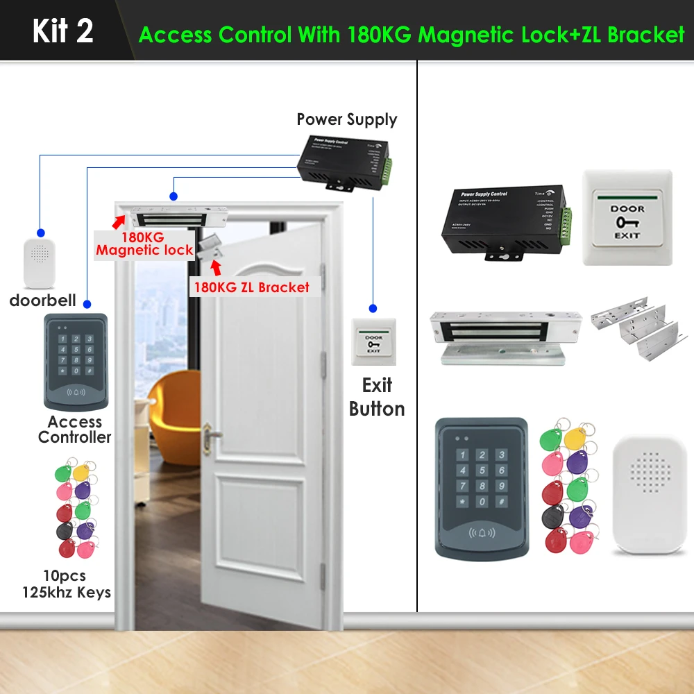 Kit2: контроль доступа с магнитным замком 180 кг + кронштейн ZL