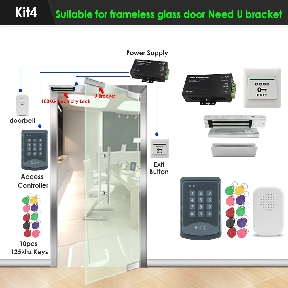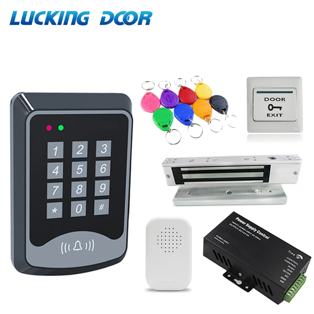 1000 пользователей 125 кГц RFID Клавиатура система контроля доступа комплект Электрический 180 кг магнитный замок + 10 клавиш + блок питания + кнопка выхода