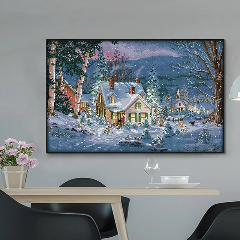 Уютные рождественские наборы для вышивки крестиком Снежные пейзажи печатные наборы для вышивки 11CT 14CT Diy Рукоделие Декор для стен