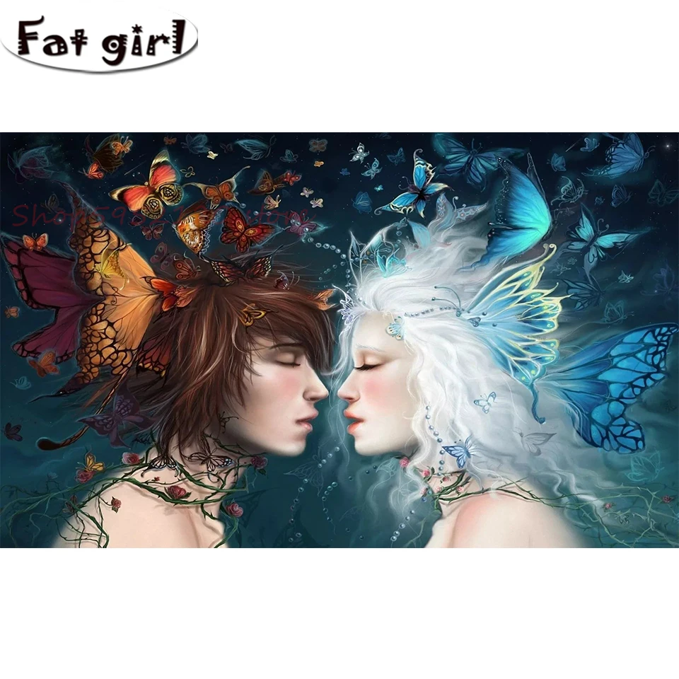 Мультфильм бабочка пара Фея 5D алмазная картина квадратная круглая дрель вышивка крестиком Мозаика высокое качество наклейки на стену