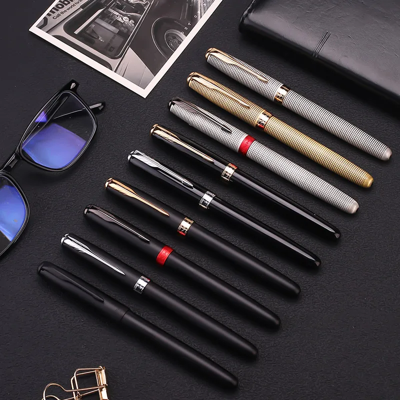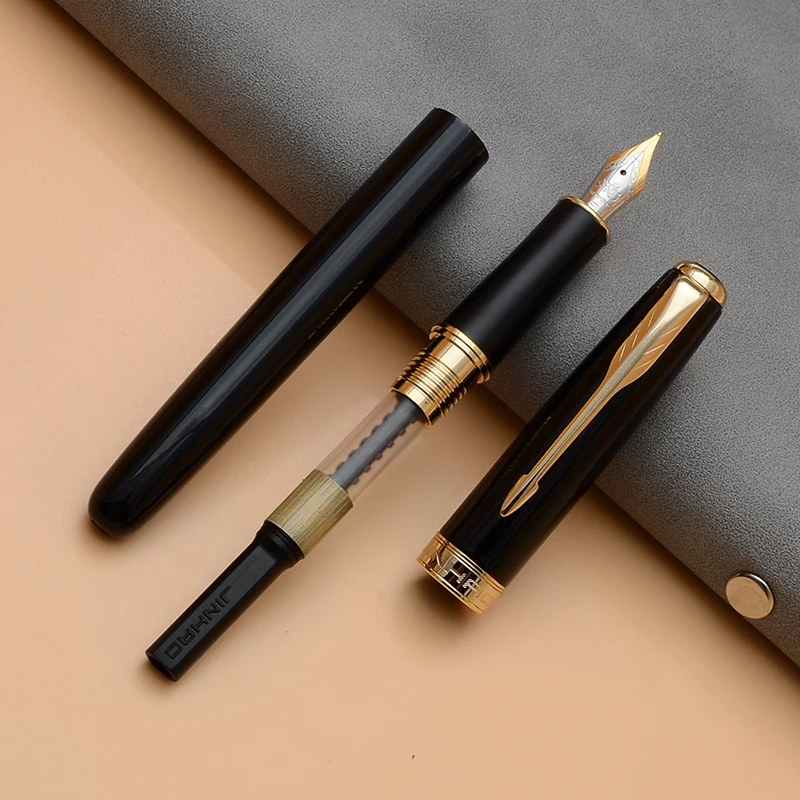 Ручка перьевая Jinhao в металлическом стиле, набор чернильных наконечников бронзового, серебристого, черного цветов с красивой текстурой, Офисная школьные письменные принадлежности