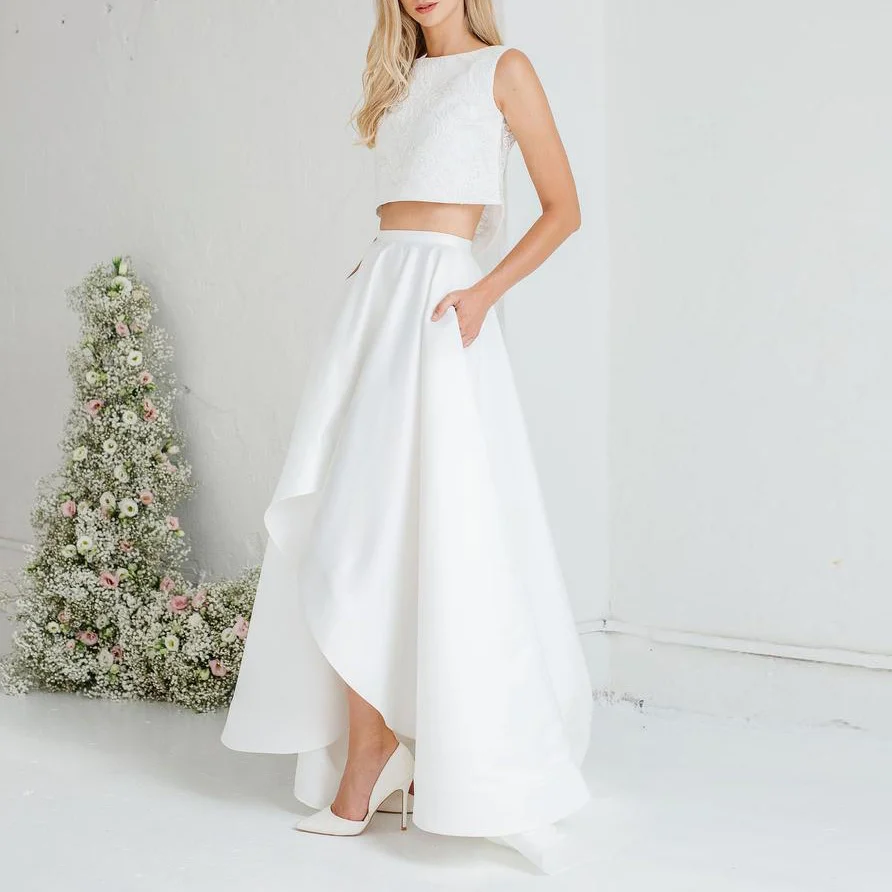 Атласная Юбка с карманами Mingli Tengda, асимметричное съемное свадебное платье со шлейфом для невесты, длинная юбка для выпускного вечера