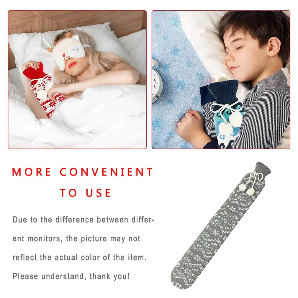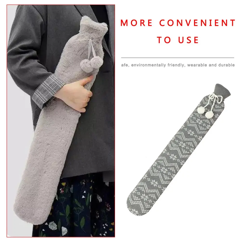 1L бутылка для горячей воды, очень длинная Рождественская сумка для горячей воды, вязаная плюшевая крышка, резиновая грелка для рук, шея, задняя талия, теплые принадлежности