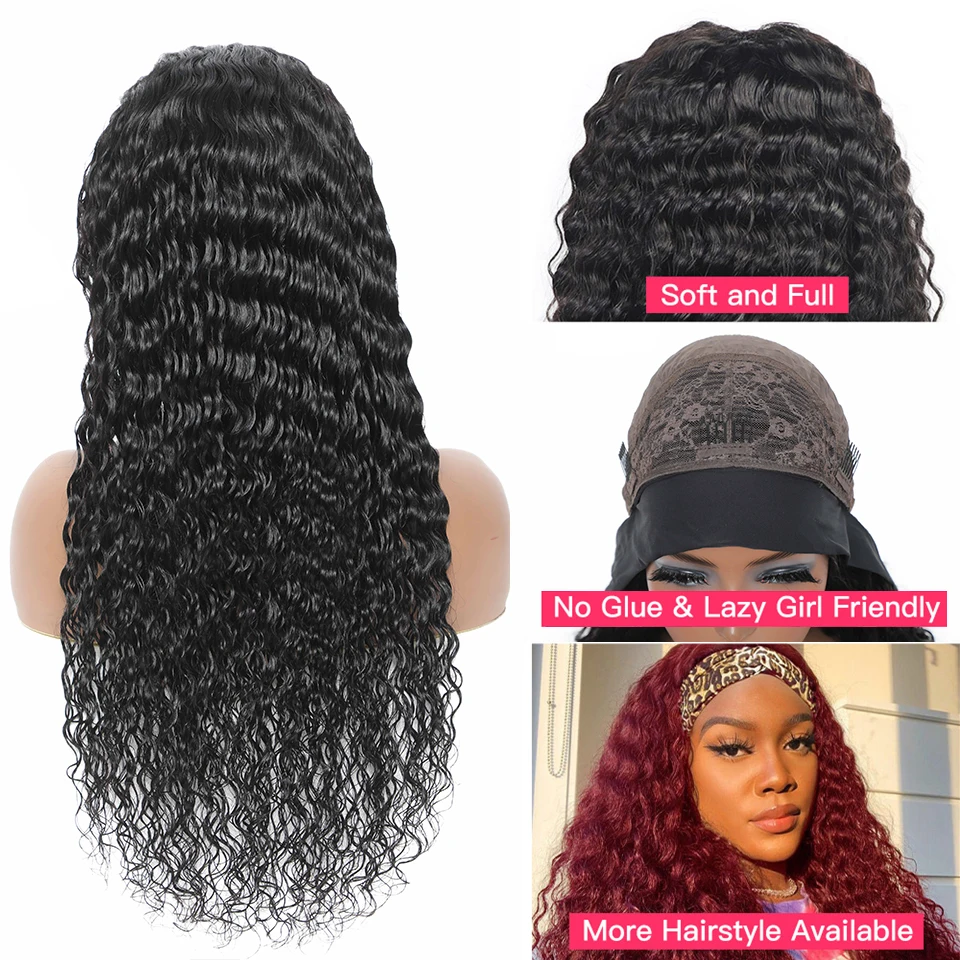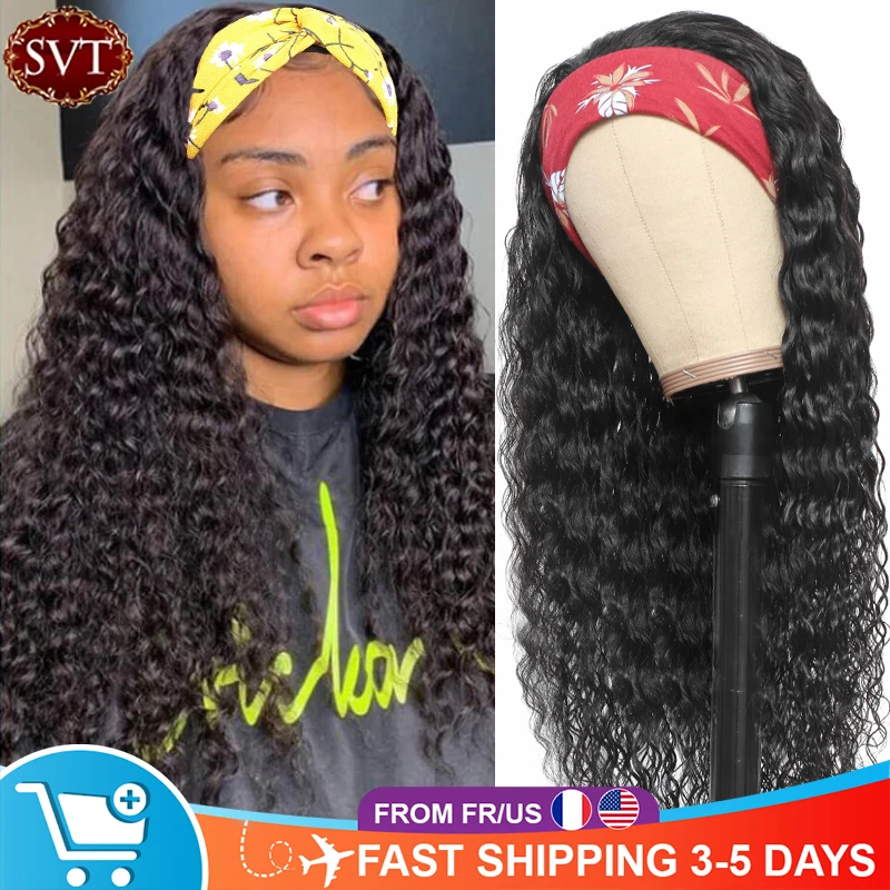 SVT индийские волосы глубокая волна парик с головной повязкой, парик из человеческих волос 26 дюймов Пряди человеческих волос для Волосы Remy манекен для шарфа парика бесклеевой глубоко вьющиеся синтетические волосы